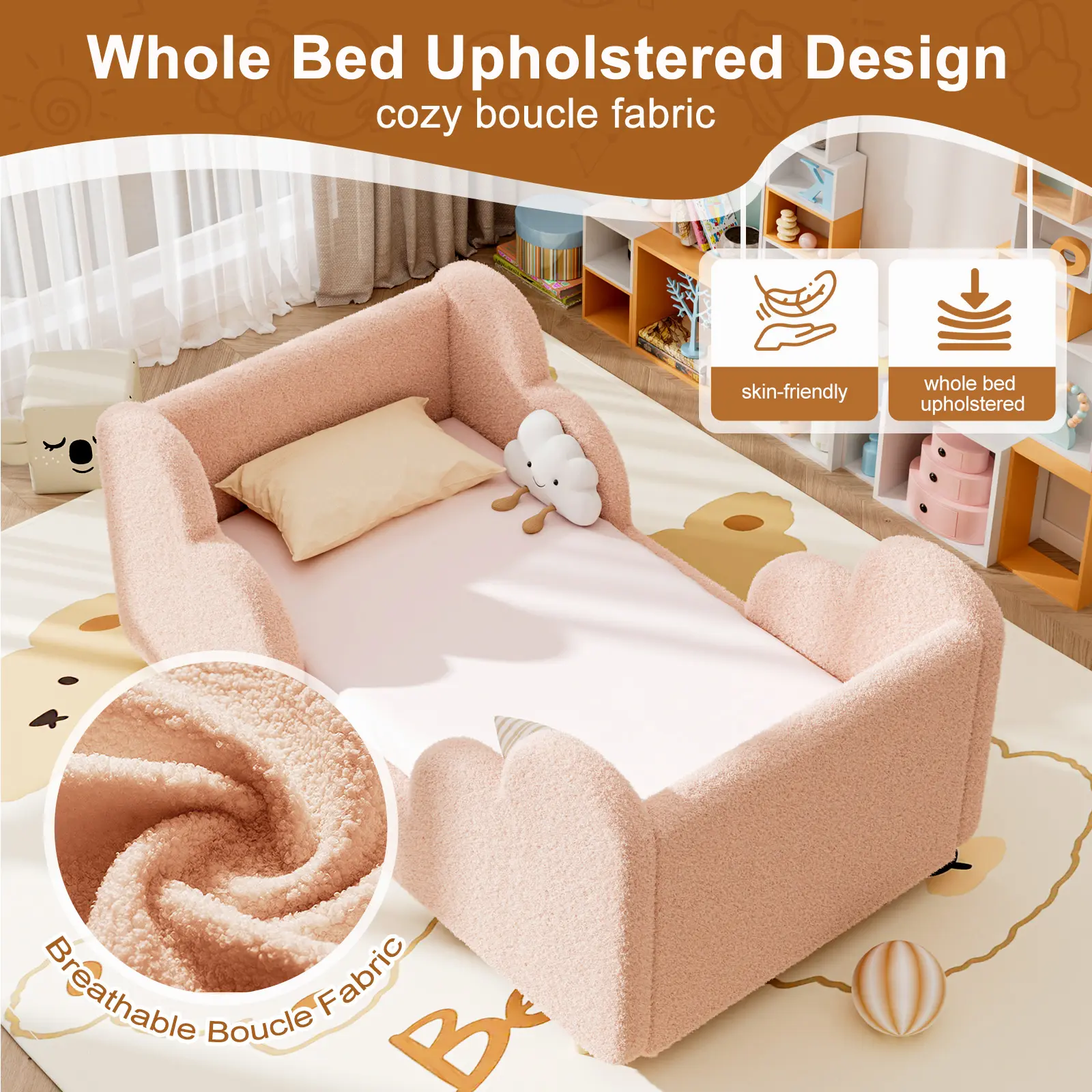 【Whole Soft Design】:Both versions feature a luxuriously soft frame crafted by professional designers, combining elegance with comfort. Kids can snuggle up after playtime, relaxing their bodies and minds.