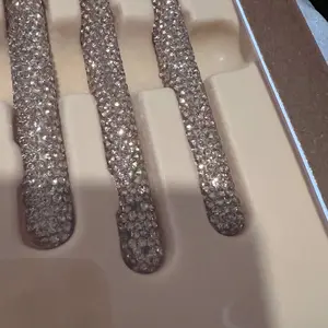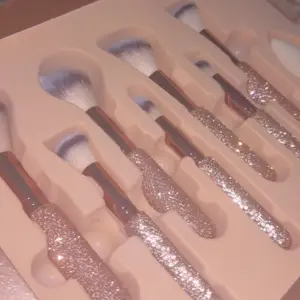 Ive been looking for these but they were always a crazy price. I finally found them on someone’s live and I immediately bought them. I thought the bling would fall off but it’s very secured I tried to pick at it and it will not come off. The brush hairs are very soft I can’t wait to try these out.