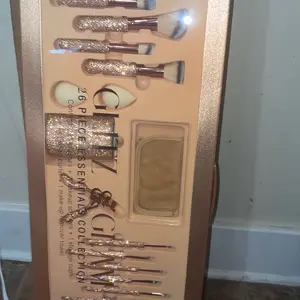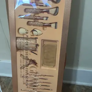 Box came a little damaged.They are cute except some of the rhinestones are already falling off! The brushes are soft although some of the hair brushes are folded. I would recommend buying its okay for the price! 🤩