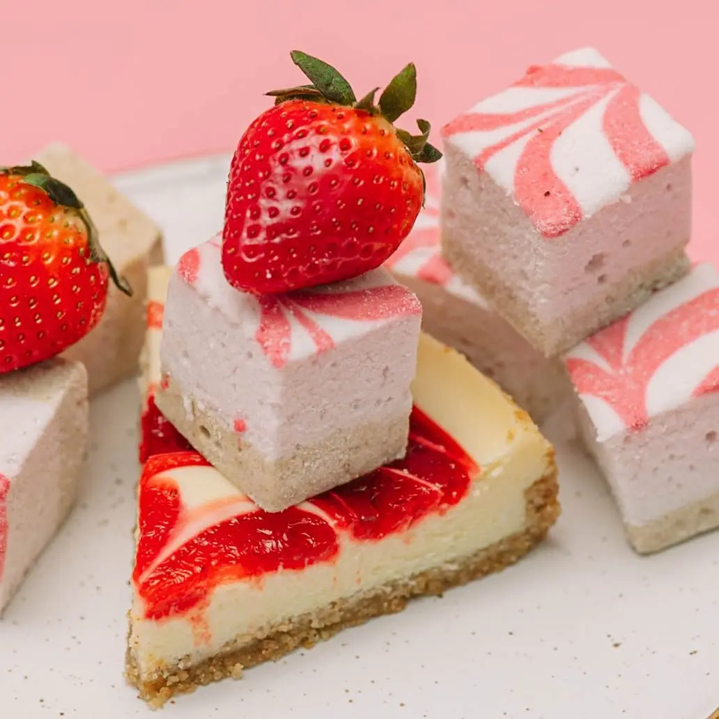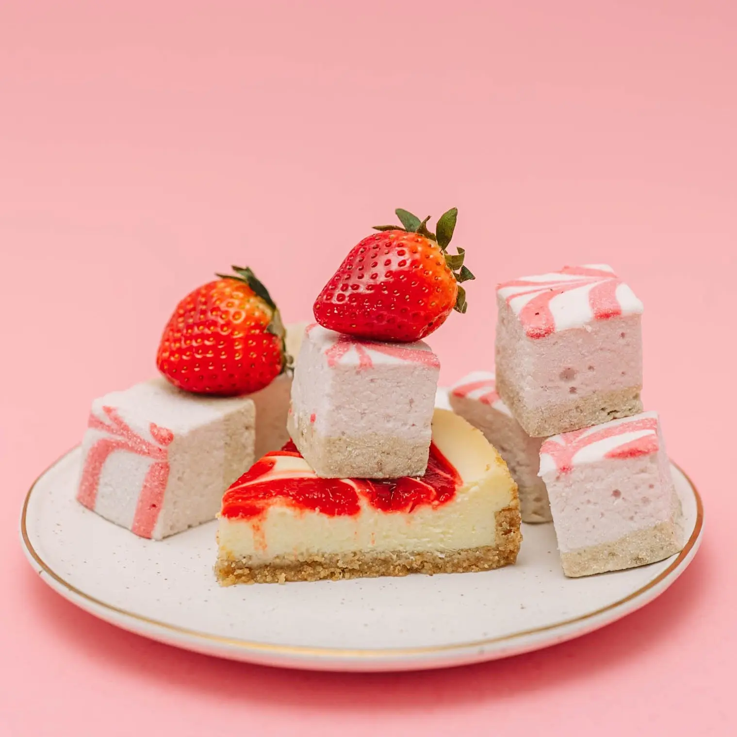 Cheesecake is a light, fresh dessert made with whipped cream cheese, a crumbly crust, and is often topped with fresh fruit. Our Strawberry Cheesecake marshmallows are bite-sized bits of heaven! Pro tip: buy 2 boxes at once so you don't have to share with others. Available for the winter season only!