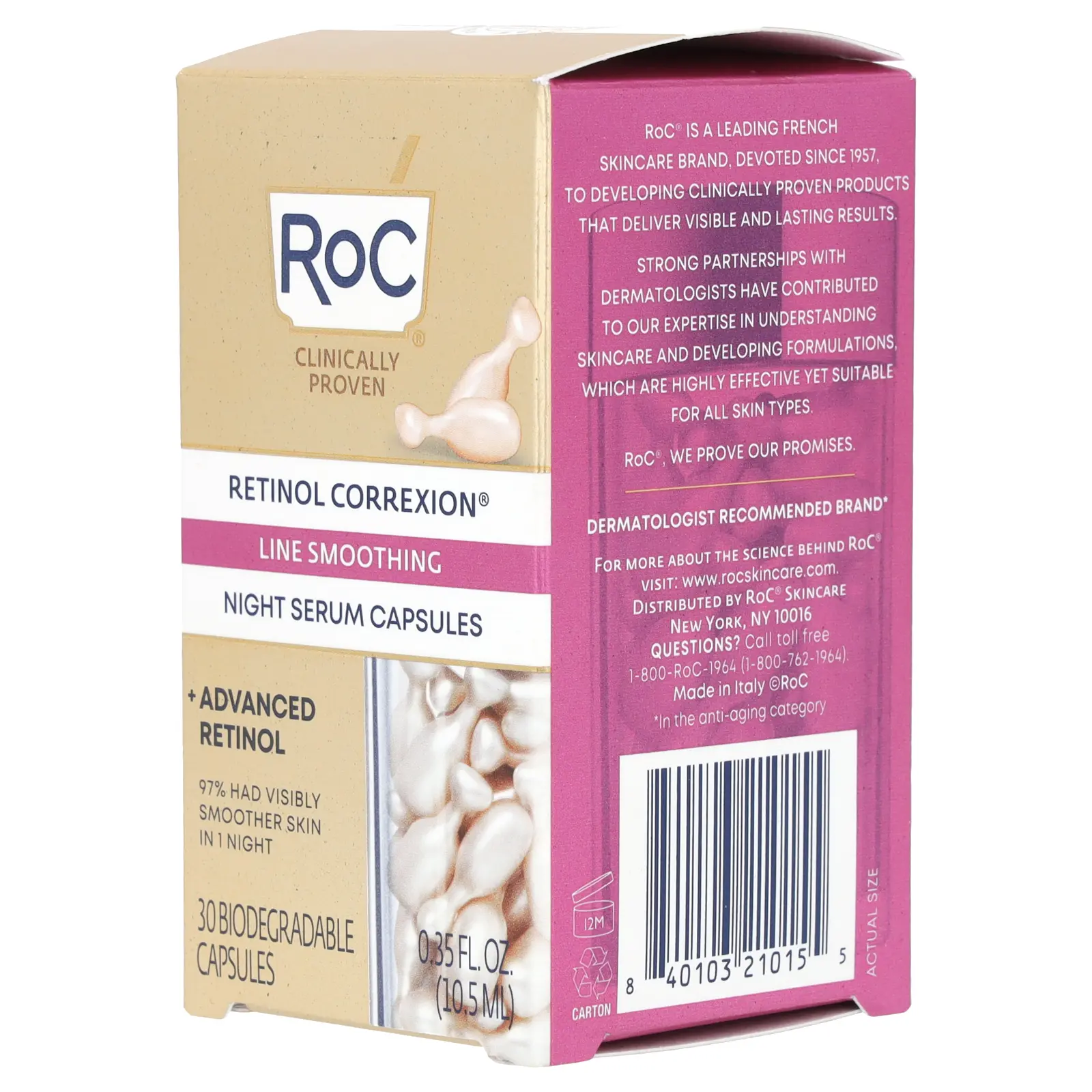 RoC Retinol Correxion, Line Smoothing Night Serum Capsules, 30 Biodegradable Capsules, 0.35 fl oz (10.5 ml)