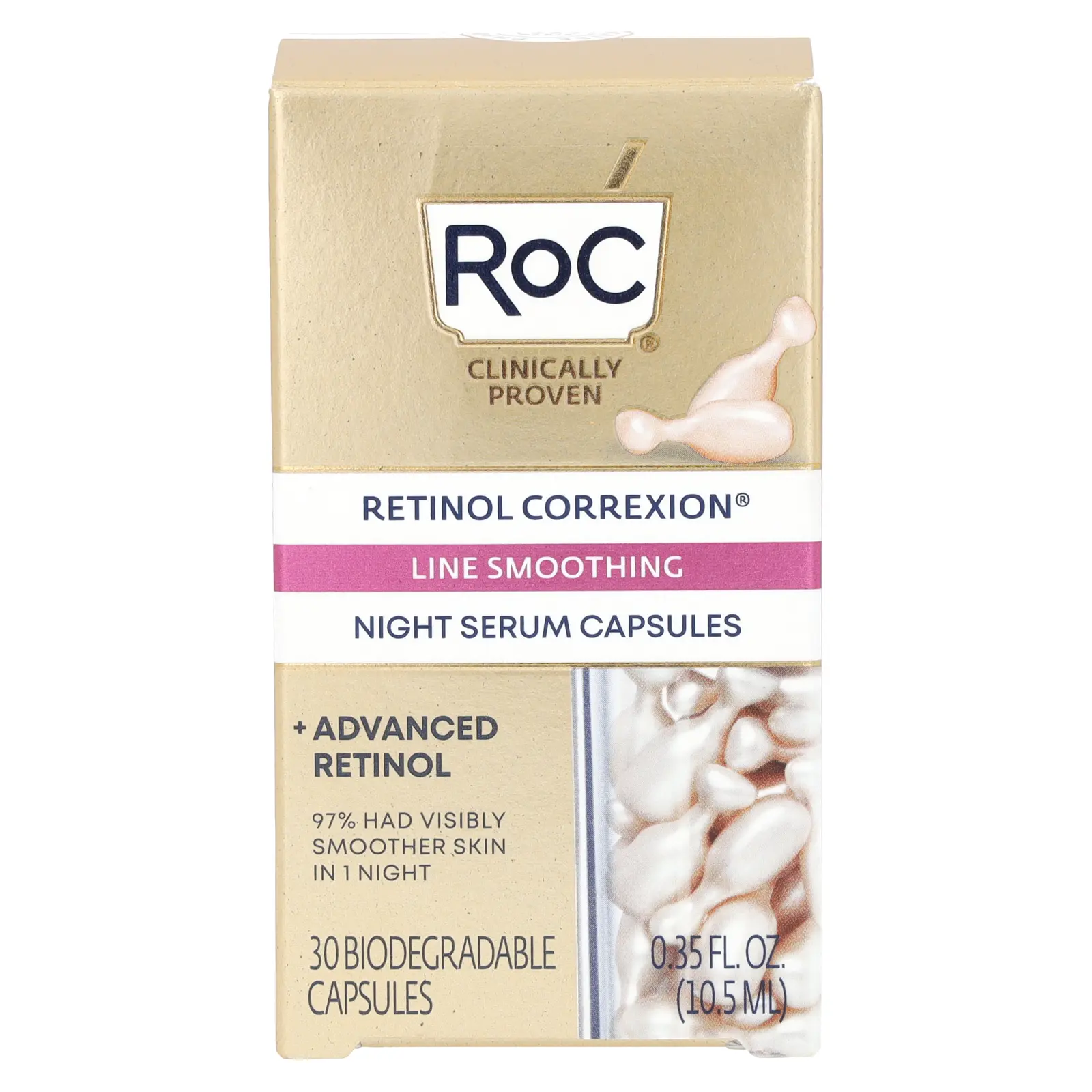 5. RoC Retinol Correxion, Line Smoothing Night Serum Capsules, 30 Biodegradable Capsules, 0.35 fl oz (10.5 ml)