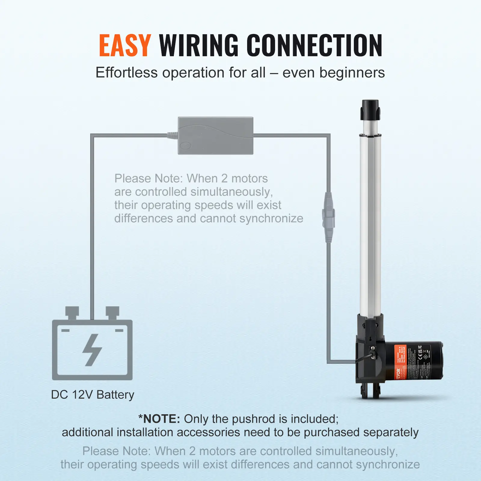 • Heavy-Duty Applications: VEVOR heavy duty linear actuator boasts 1320lbs/6000N powerful torque output, perfect for industrial automation and heavy-duty lifting system. It's designed to tackle high-torque and heavy-load tasks with ease, providing reliable performance in demanding environments.