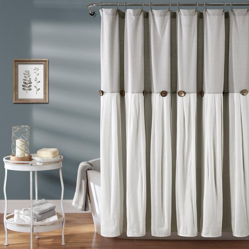 Add a fun energy to your bathroom with the Lush Decor Faux Linen Button Shower Curtain. The trendy button embellishments add a unique touch. The pleats in the faux linen fabric give it a textured look. Slight weave variations create a relaxed appearance. Perfect for guest, primary, or teen bathrooms. Choose from multiple colors to match any space.