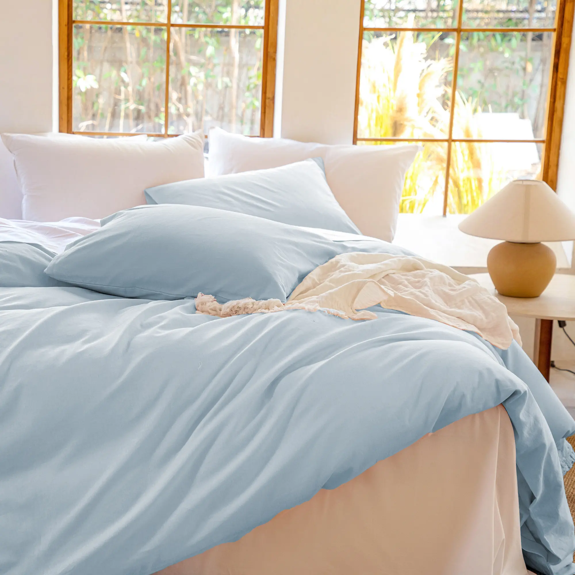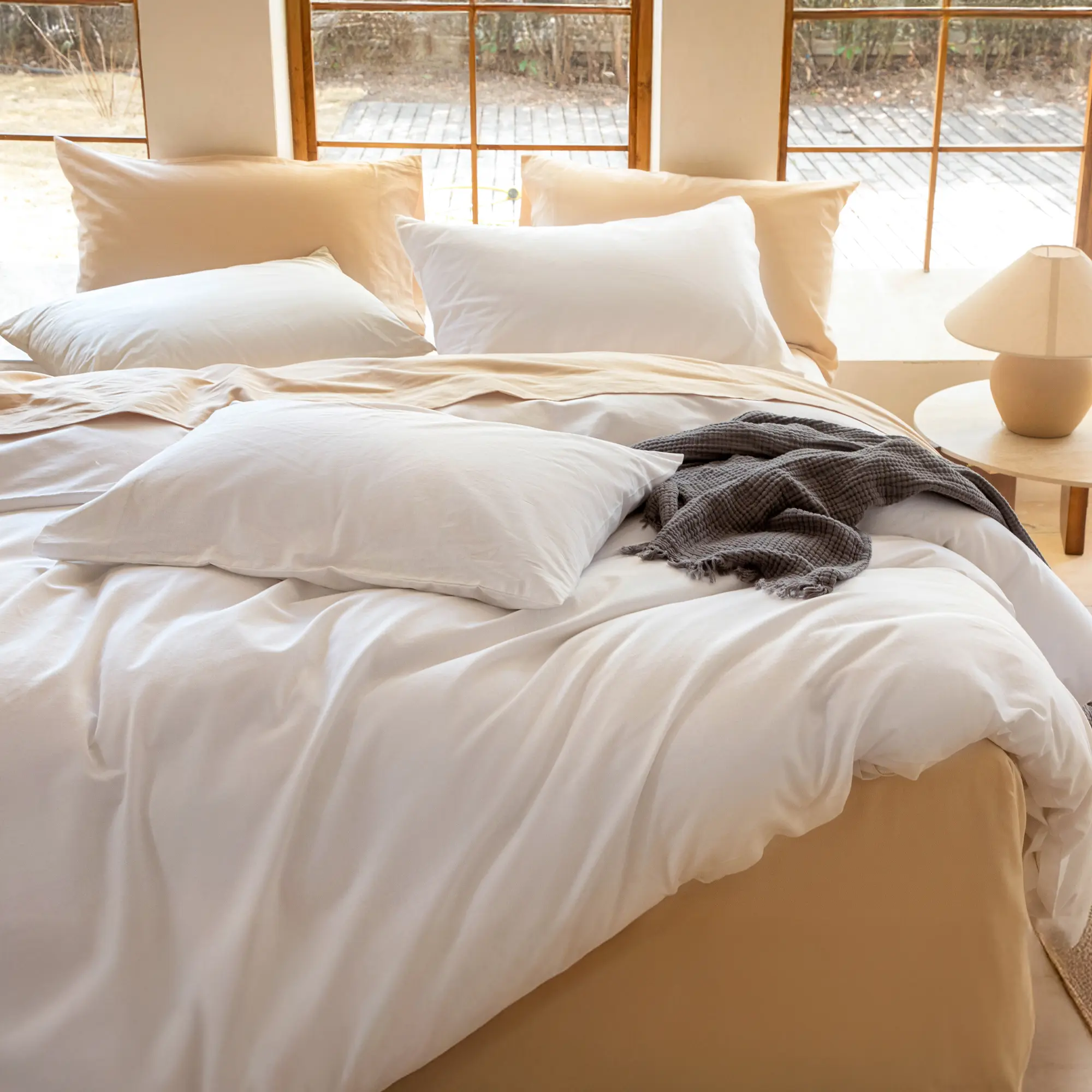 ·[Elegant and Stylish] With its minimalist aesthetic and understated color palette, this stylish and functional bedding set enhances any bedroom decor, from modern to farmhouse styles. The solid color design and natural textures evoke a sense of refined luxury, creating a calming and comfortable atmosphere.