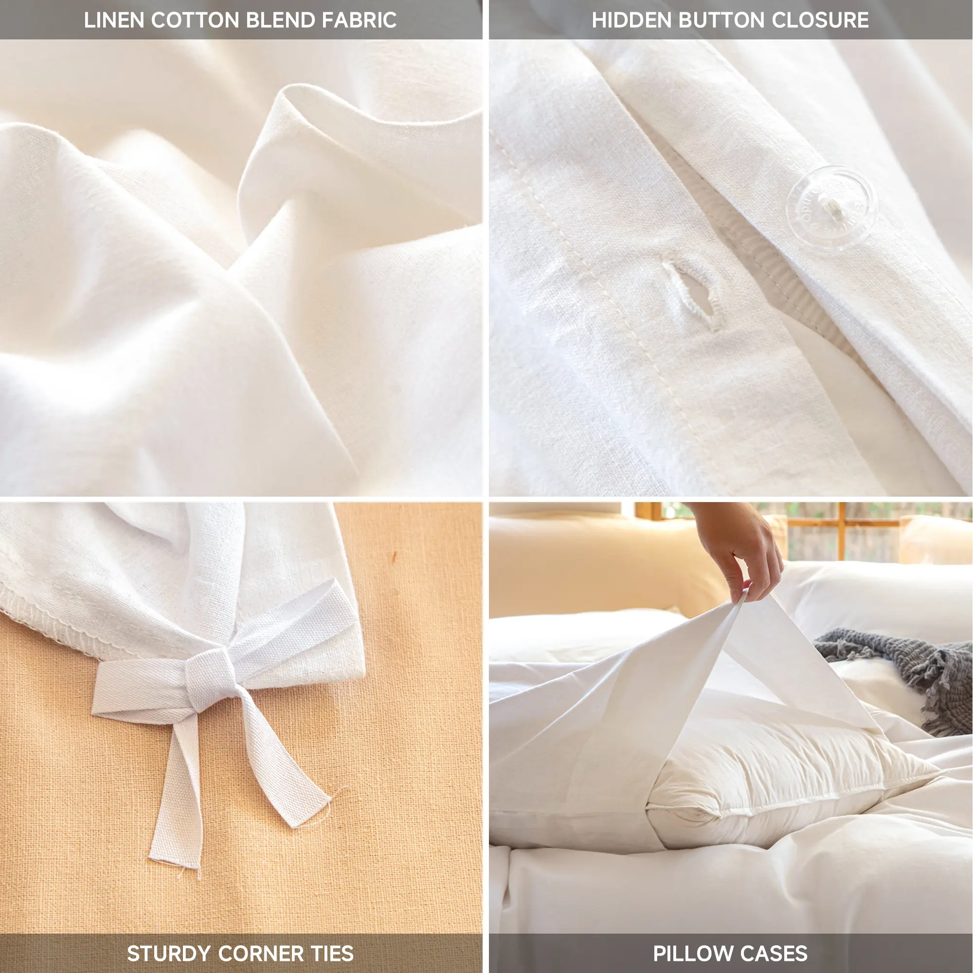 ·[Breathable and Moisture Absorption] Upgrade your bedding with our duvet cover set, crafted from a premium blend of 30% linen and 70% cotton. This cooling, cozy, and durable home bed set helps regulate body temperature, making it perfect for hot sleepers. Experience refreshing sleep night after night!