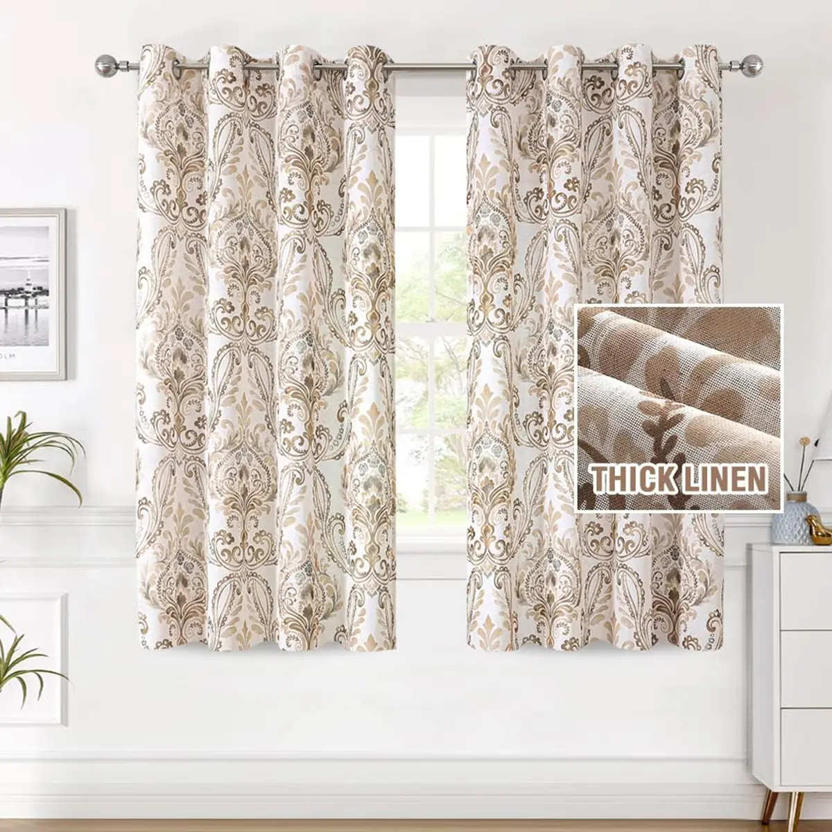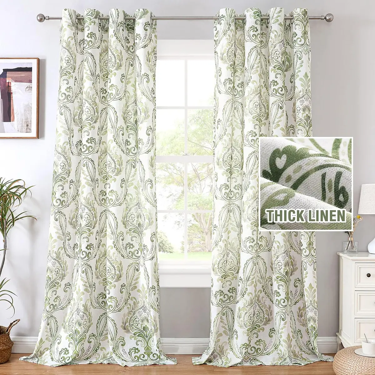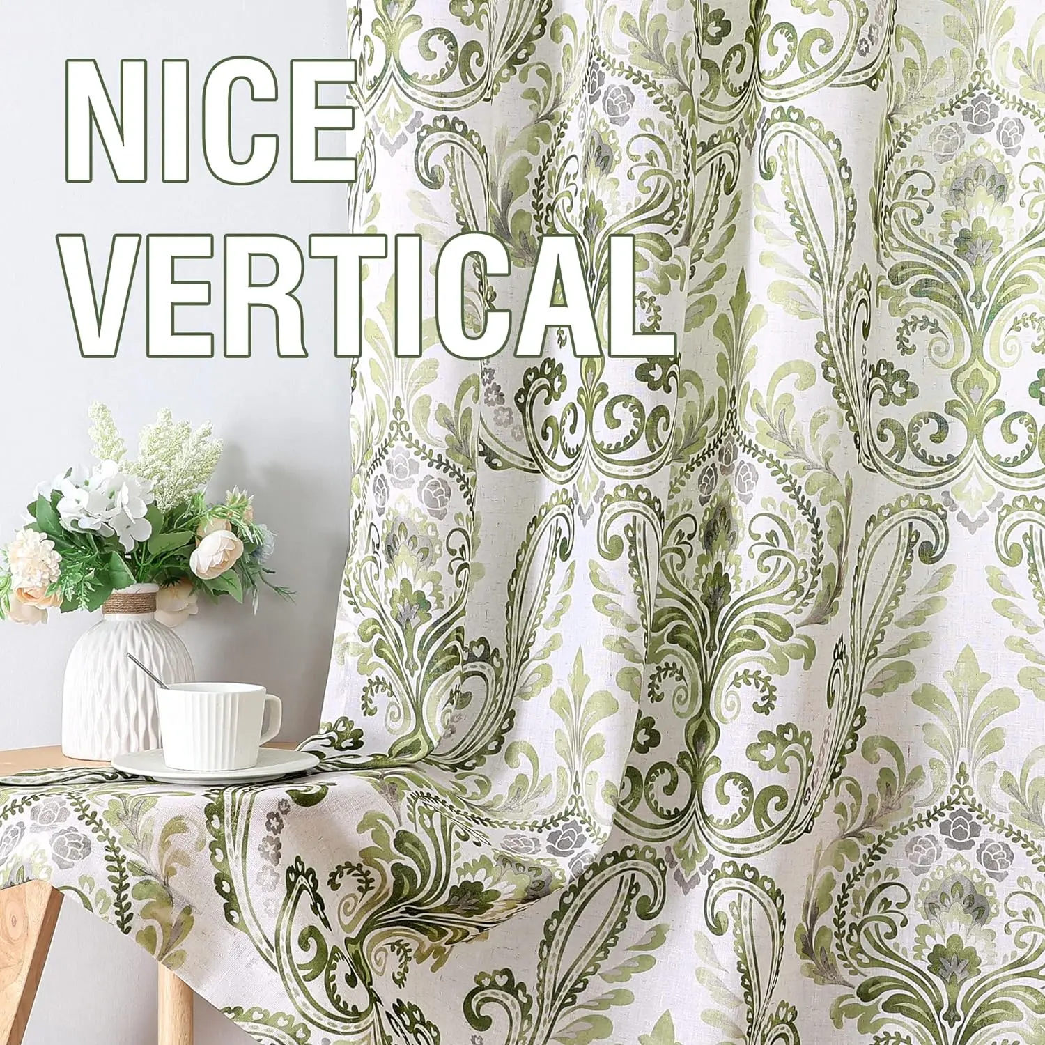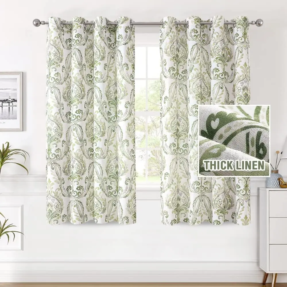Damask Floral printed in 6 neutral colors,can match with various home styles. These airy and breathable linen window drapes are easy for cleaning. Machine washable in cold water, but only use non-chlorine bleach and tumble dry low and warm iron when needed.