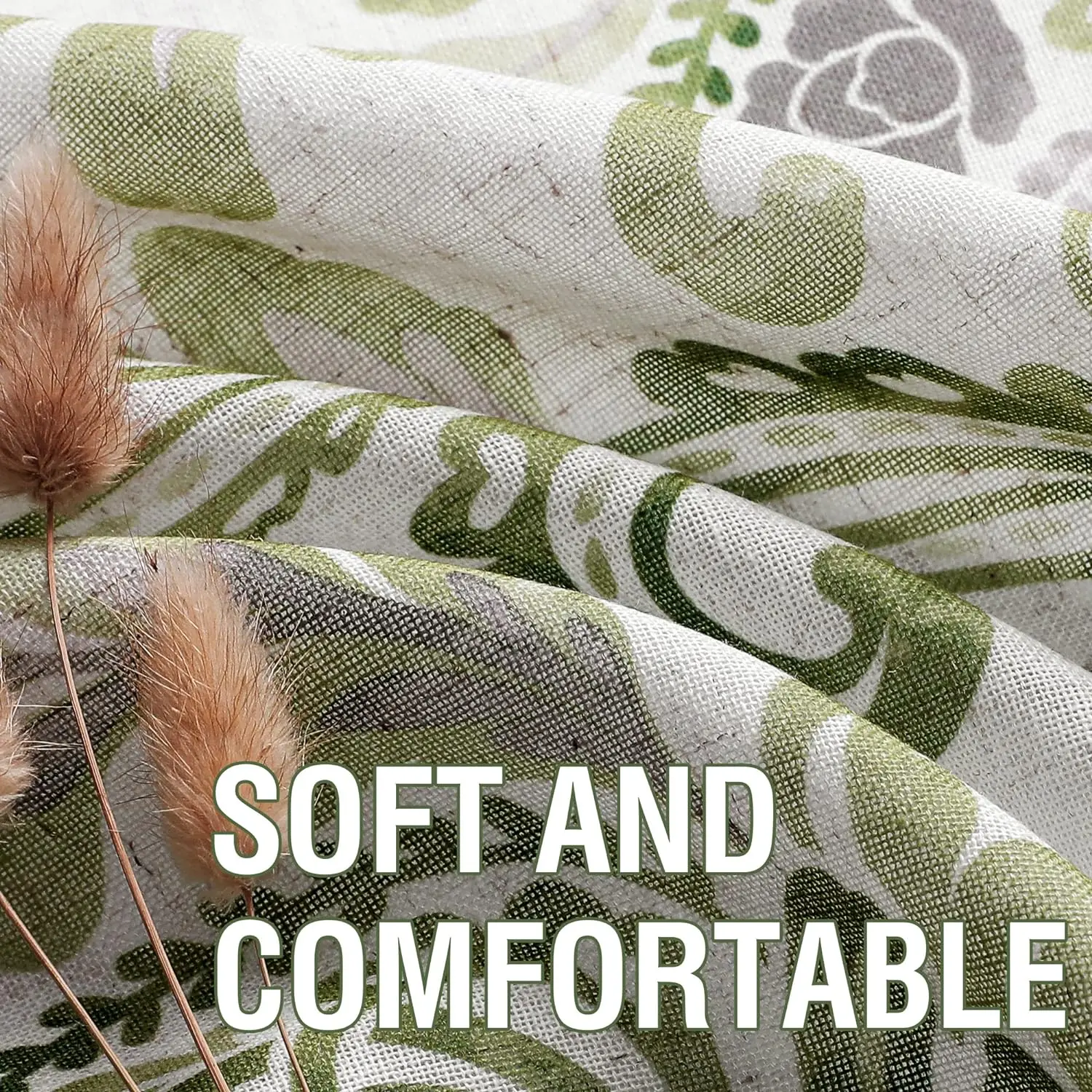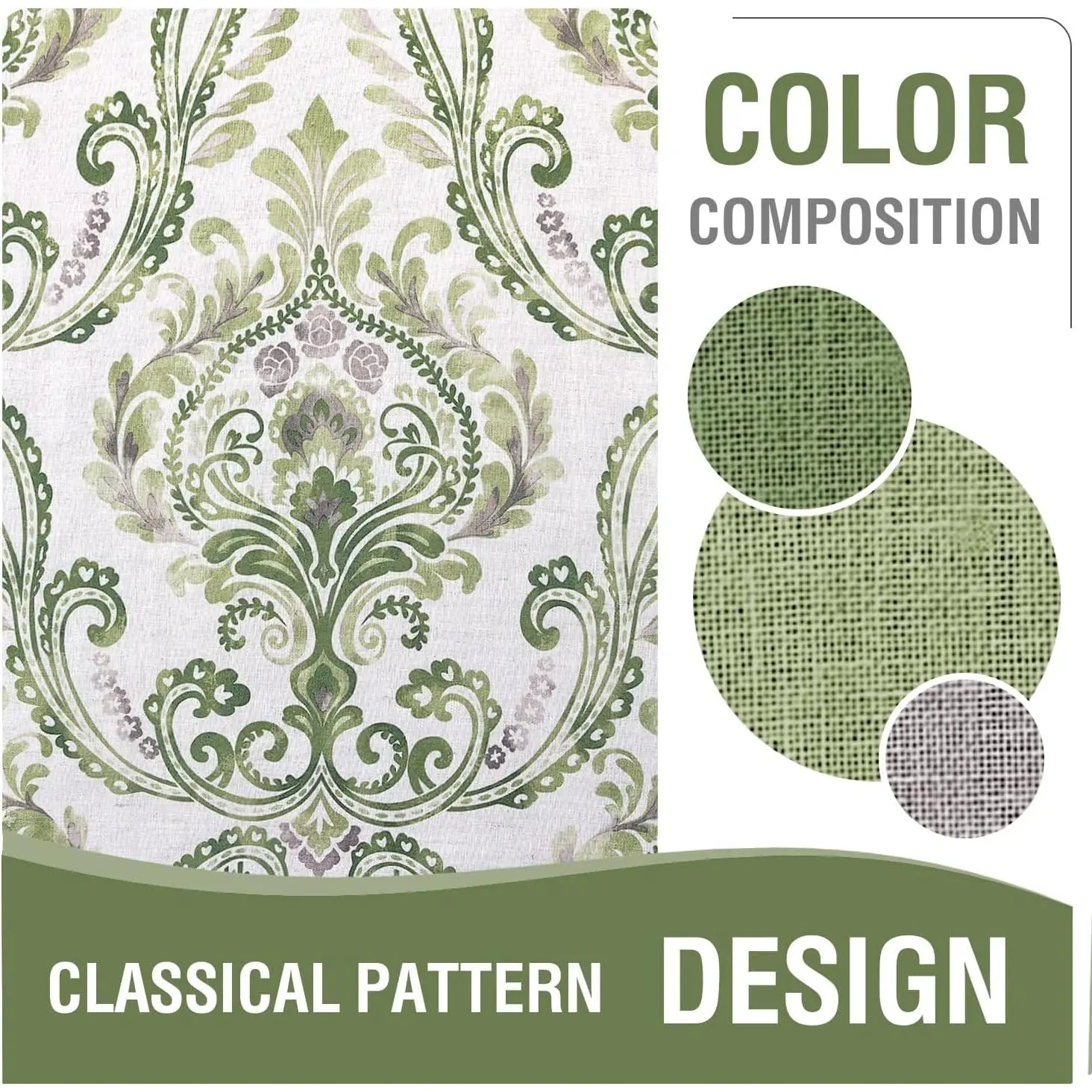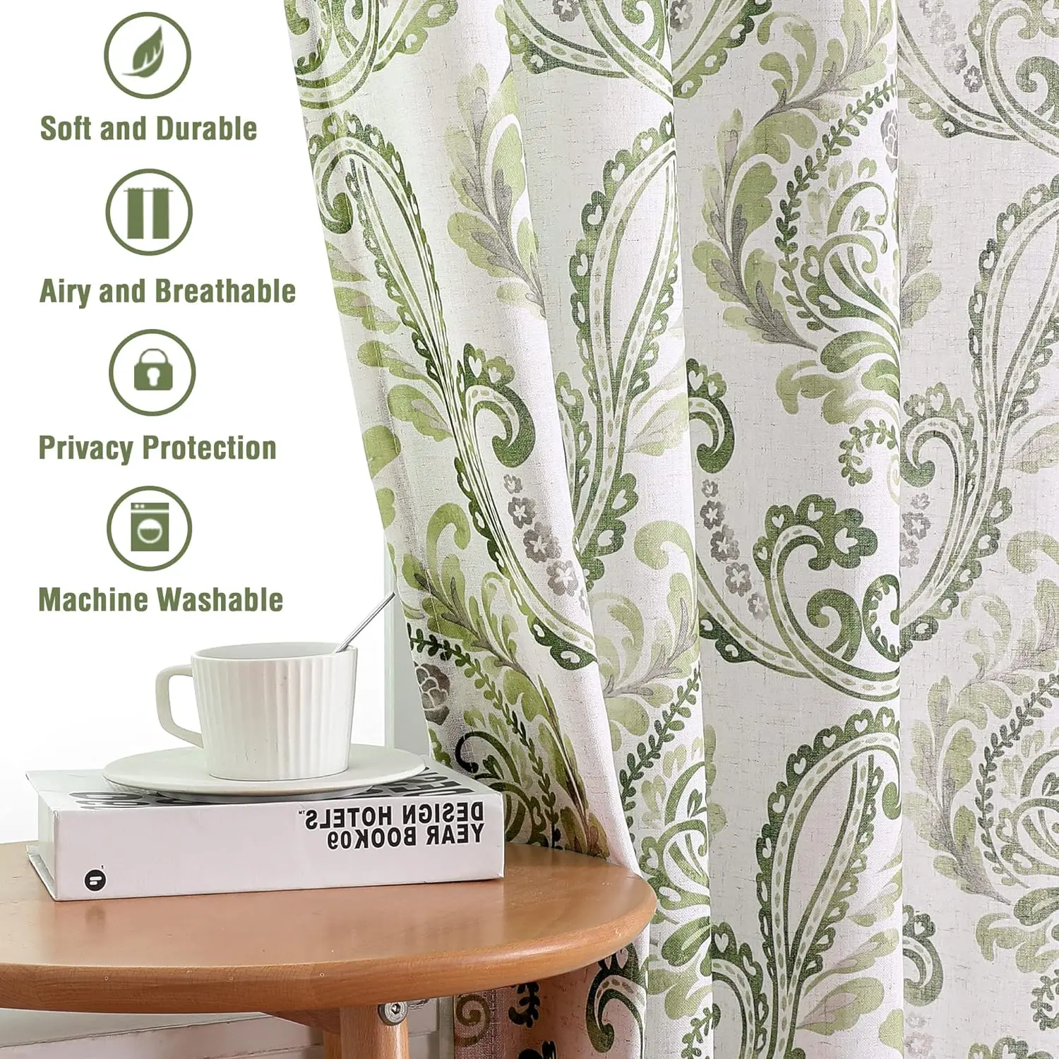 Damask Floral printed in 6 neutral colors,can match with various home styles. These airy and breathable linen window drapes are easy for cleaning. Machine washable in cold water, but only use non-chlorine bleach and tumble dry low and warm iron when needed.