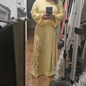 Iâm 4,11 and I weight 106, I got a small size and it fits me perfectly. If youâre short and want a perfect fitting abaya then this is perfect for you. The pink color is also not too bright itâs a very washed and light pink. The dress will come up to your ankles if youâre my height.