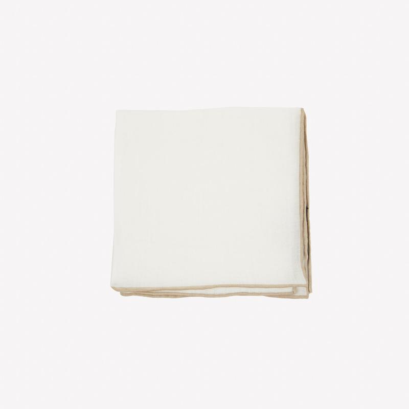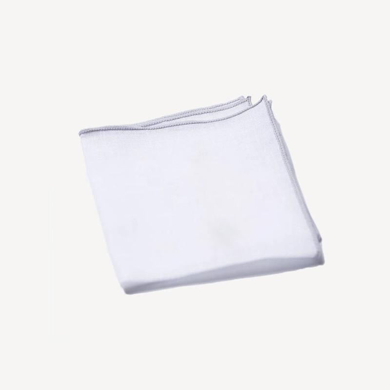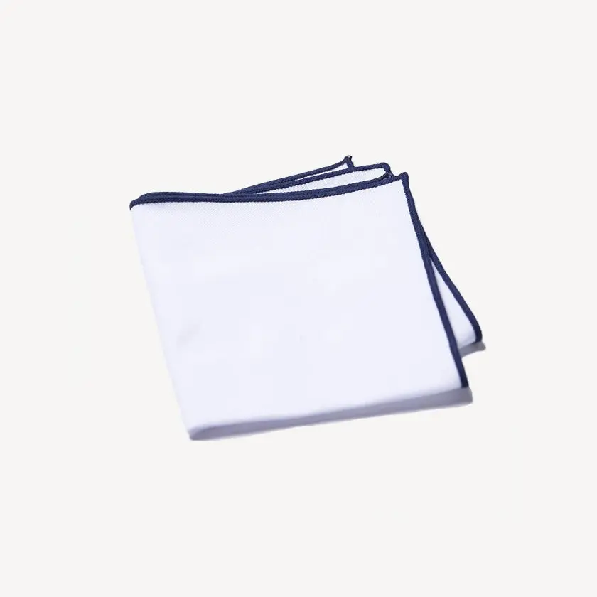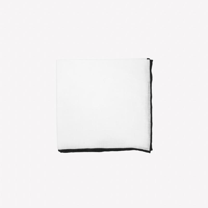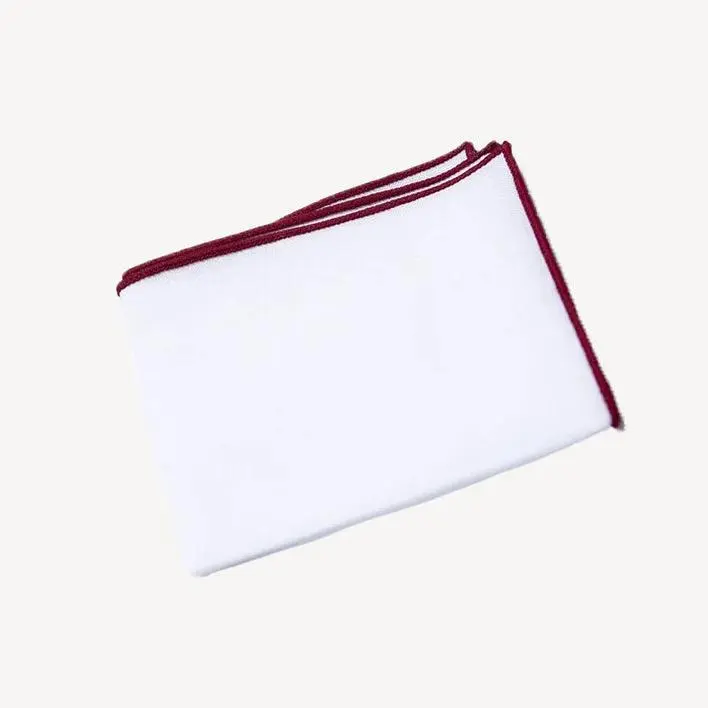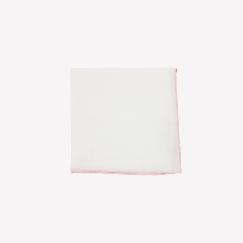 A fresh way to adorn your pocket with a classic white linen pocket square finely finished with a purl marrow edging for a pop of color.