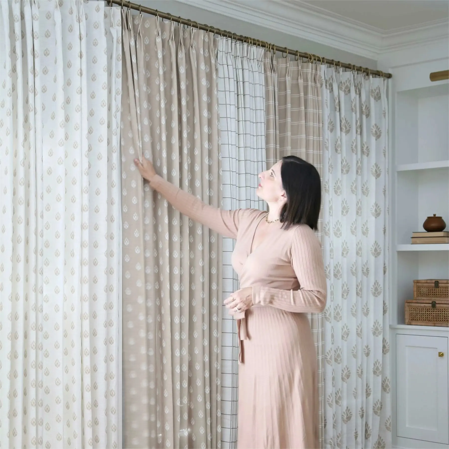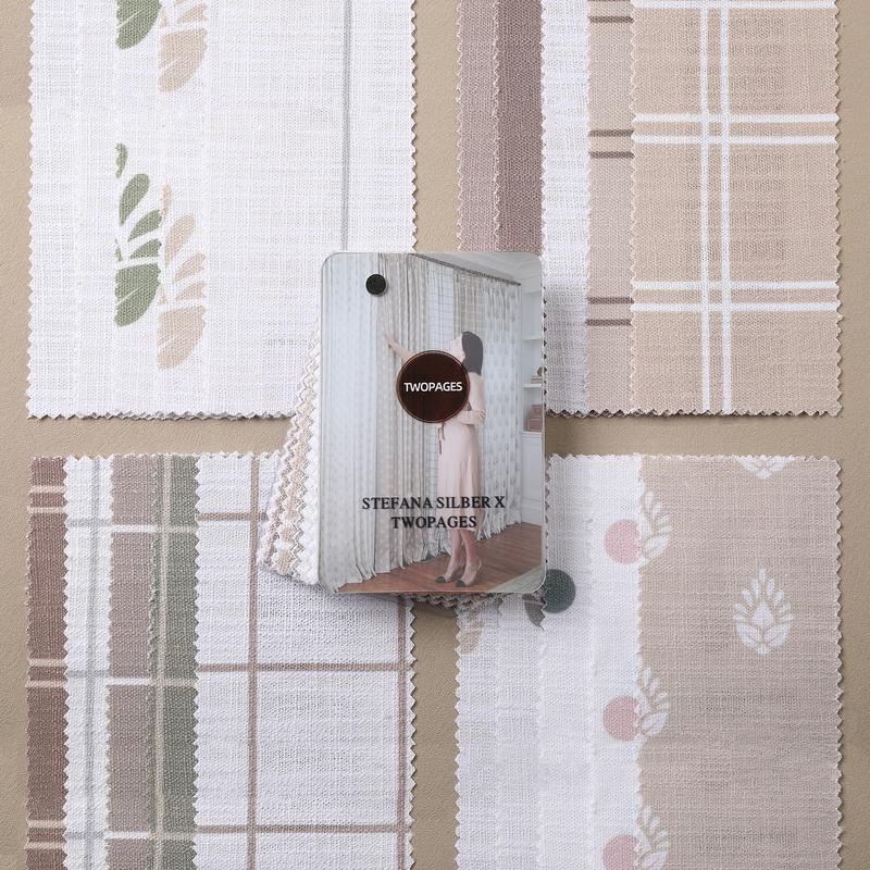 ·Printed on Liz faux linen fabric, designed by Stefana Silber. Neutral home décor style with patterns plaid, floral, dots.
