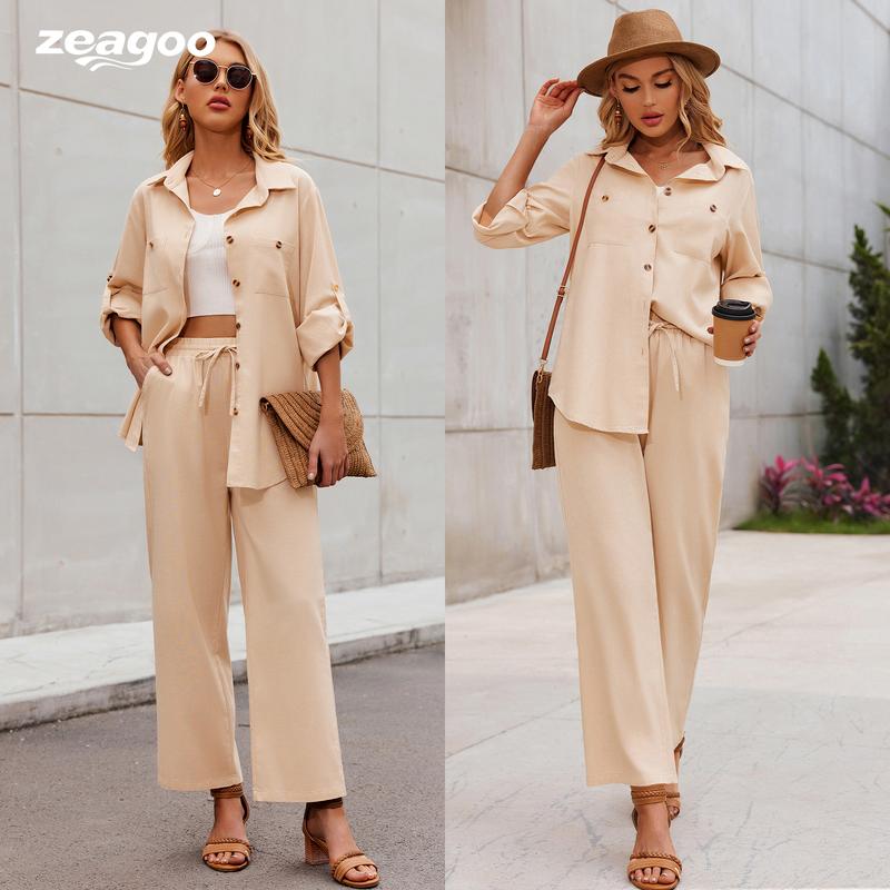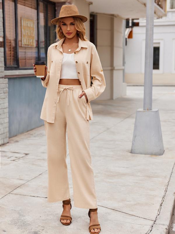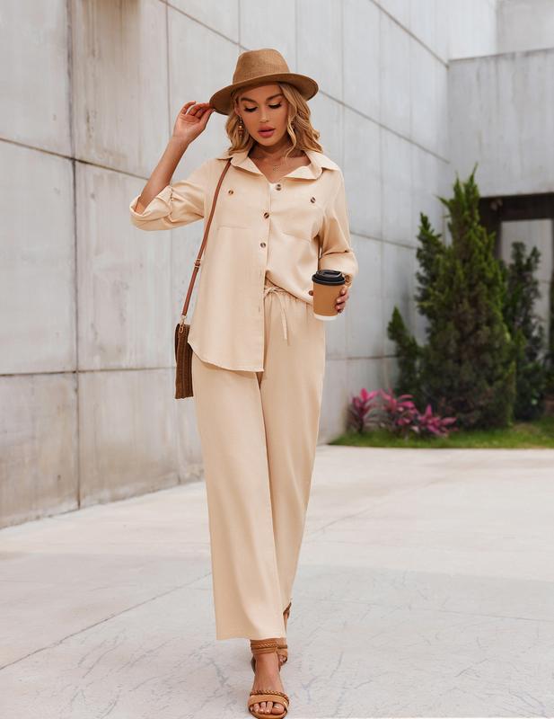 ·Versatile Outfit: Women 2 piece outfits sets can be wear separately. The long sleeve button down shirt can be pair with jeans, skirts, leggings or shorts,and the drawstring pants can also be match with T-shirt or camisole.