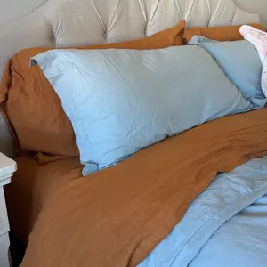 I bought the natural set last month and fell in love with how they felt, so of course, I had to buy another set. This time we went with dusty blue. I am very excited to never have to sleep on anything more than linen sheets. We are both feeling better and sleeping better.