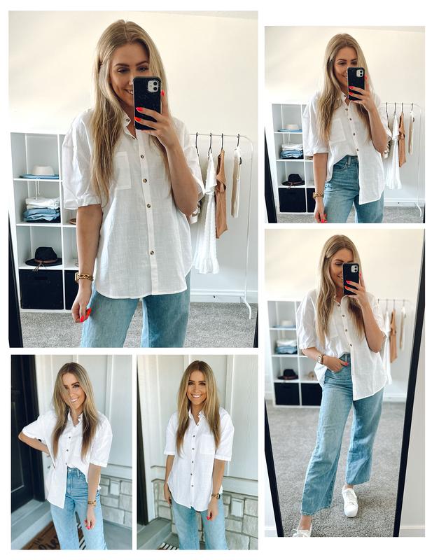 Ā·Classic Designs: Short Sleeve, full button up, boyfriend drop shoulder, collared V neck, chest pocket, plain solid color, curved hem, basic but classic design makes this linen shirt never out of style