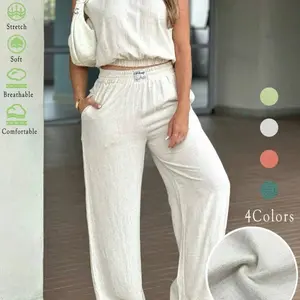 El set es muy comodo la tela es suave de lino con una buena calidad y estilo moderno para uso diario y se adapta a cualquier temporada