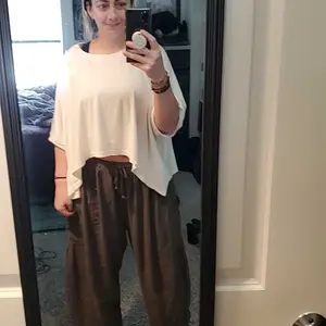 Palazzo harem pants with side pockets, wide legs, and elastic waist. Great for street wear, daily wear, yoga, outings, travel, or beach days.