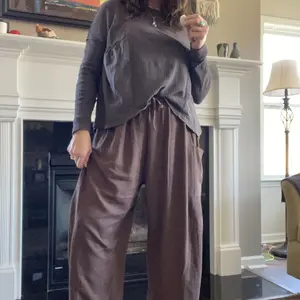 Wide-leg linen pants for everyday wear. Pair with any top, jacket, or footwear for versatile looks in any season. Features functional drawstring and side pockets.