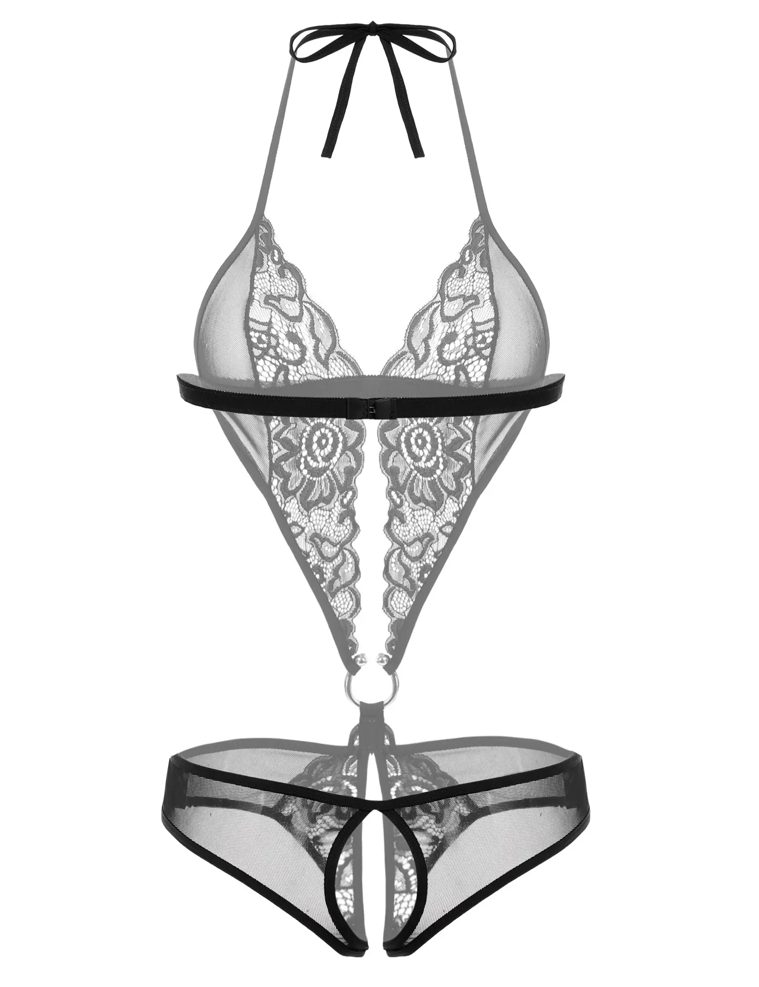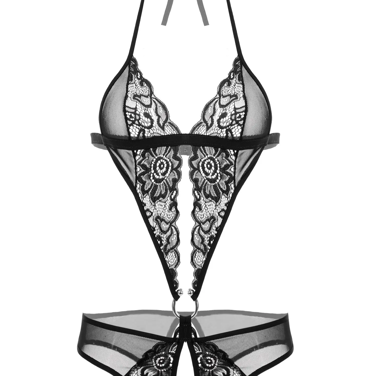 ·Lace one piece lingerie for women, halter straps, a hook and eye back closure