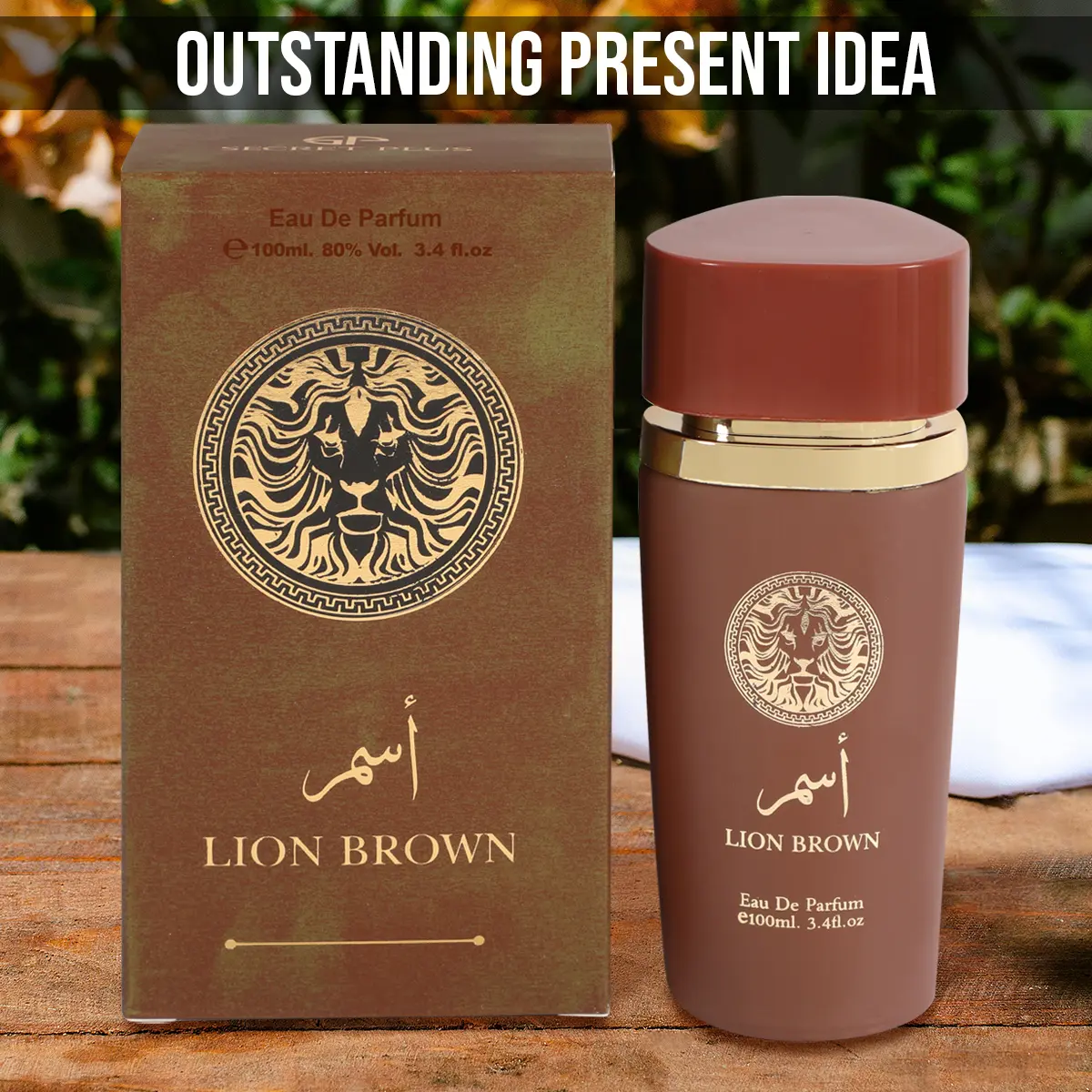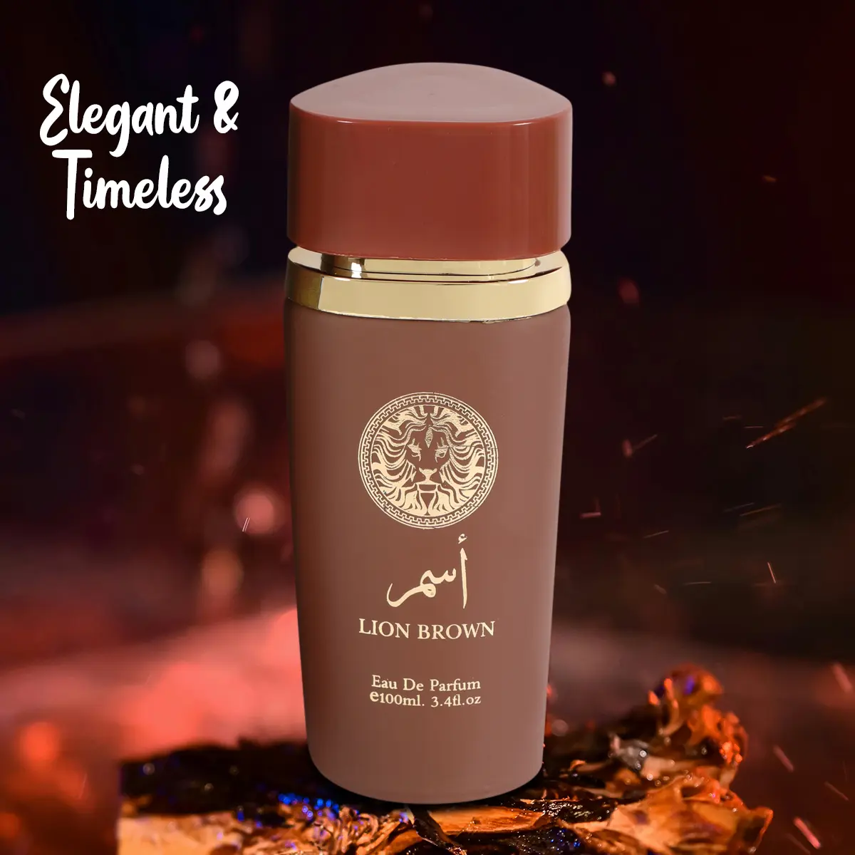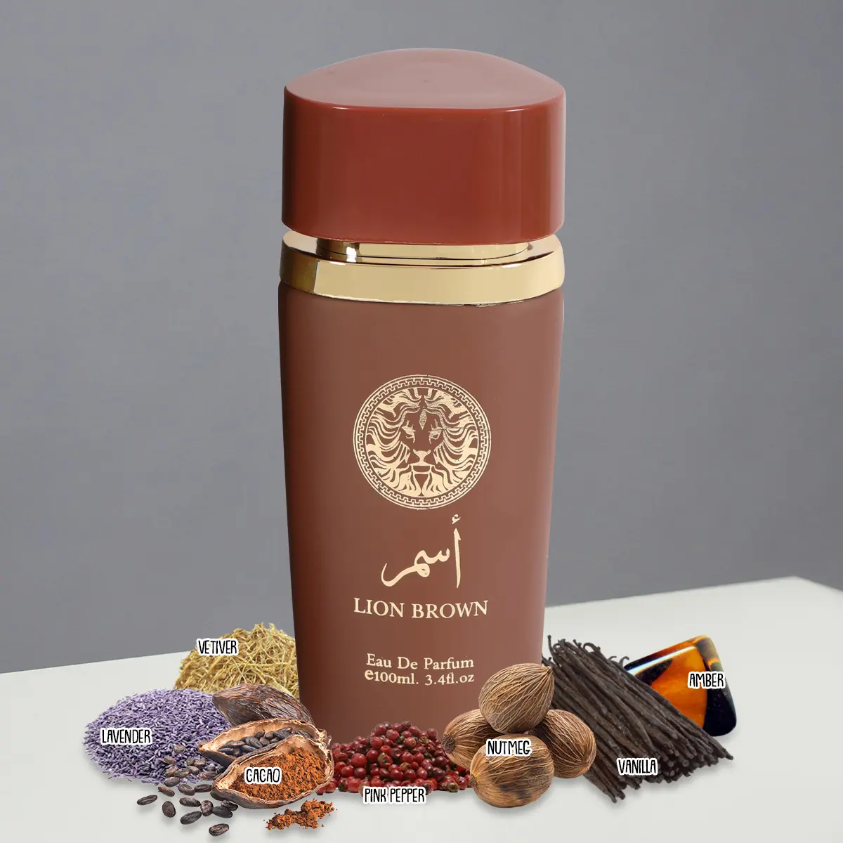 Discover the essence of Lion Brown Eau de Parfum, a 100ml masterpiece for men. This light-scented perfume offers a versatile scent profile, blending vanilla, cacao, aromatic, sweet, lavender, fresh spicy, amber, warm spicy, soft spicy, and powdery notes. Perfect for layering, it lasts 2-4 hours. Ideal for those who appreciate a complex aroma.