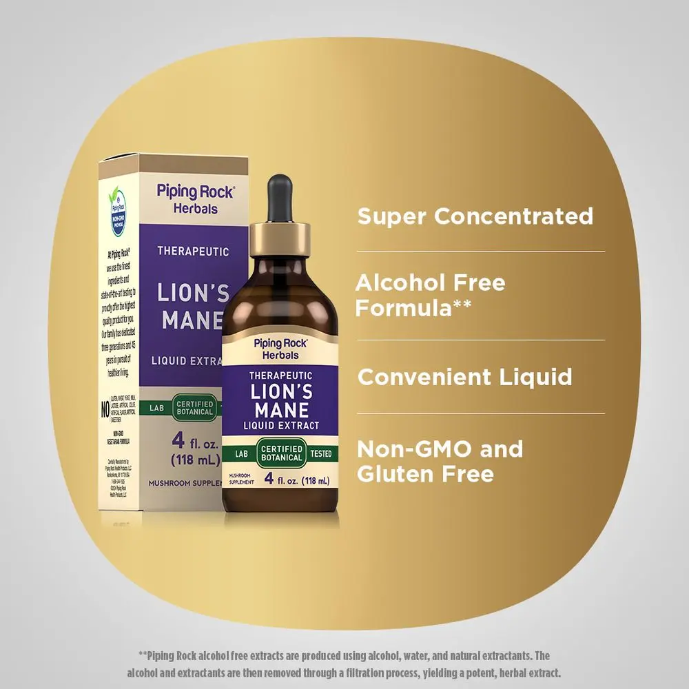 Support your routine with Piping Rock Lion's Mane, which packs a powerful supply of this traditional herb in convenient liquid extract! Our vegetarian formula is gluten free and non-GMO, making it an excellent addition to any daily wellness program. Simply add to water and enjoy!