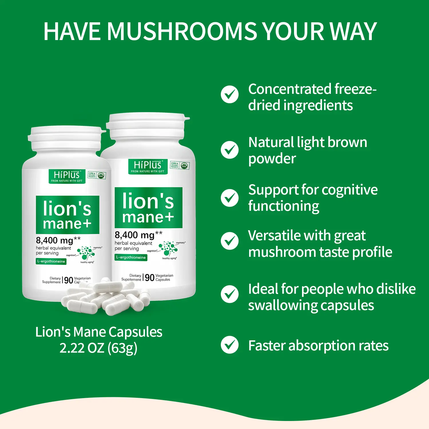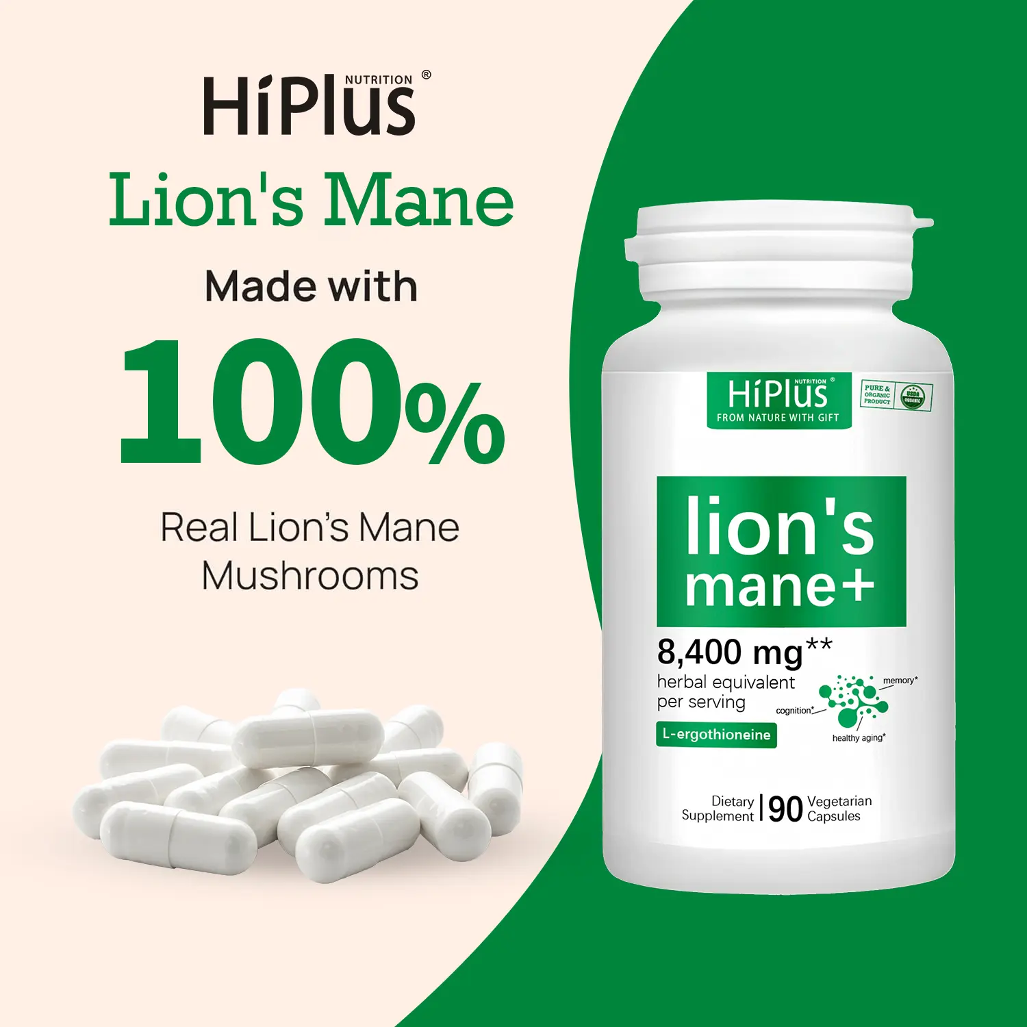 HiPlus Lions Mane Supplement with L-Ergothioneine