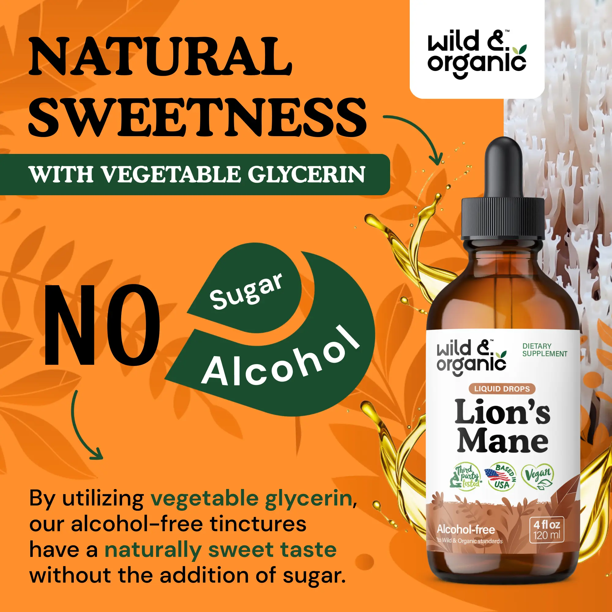 Alcohol-Free: The Wild & Organic's lions mane supplement is based on vegetable glycerin. This ensures an alcohol-free tincture that is gentle on your digestion. Enjoy a supplement that's easy on your system without compromising on quality.