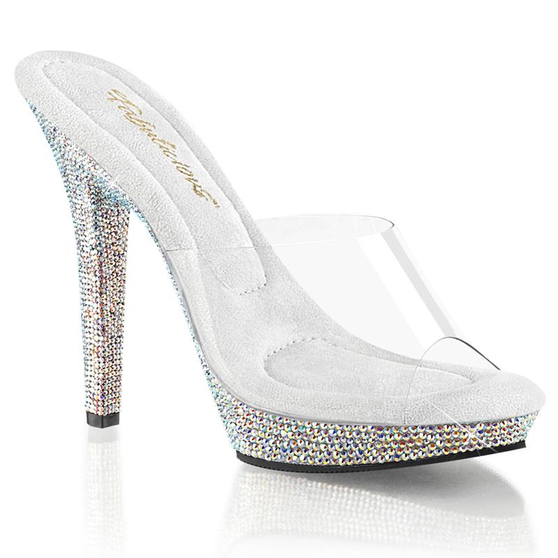Indulge in the glamorous appeal of our Lip-101DM Rhinestone Slides by Fabulicious. These slides boast a five-inch heel and a three-quarters-inch platform, offering both elegance and stability. The entire platform bottom is embellished with sparkling rhinestones, giving your every step a radiant touch. Perfect for weddings, proms, or any special occasion, these slides will help you make a dazzling entrance. Whether paired with a cocktail dress or jeans, the Lip-101DM Rhinestone Slides will effortlessly elevate your style to new heights.
