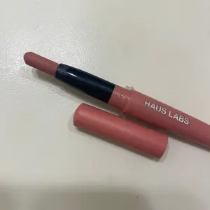 So I RARELY wear makeup. Lemme just say that. I love the lip crayon so much. This is the shade light peony matte. It’s not too much, and not too little. It’s perfect. It feels so light and it doesn’t smear. The application is so easy as well. I am obsessed with it and I am going to buy many more in this color once I get low!!! In both pictures I’m also wearing HAUS LABS mascara!! No falsies on these lashes!