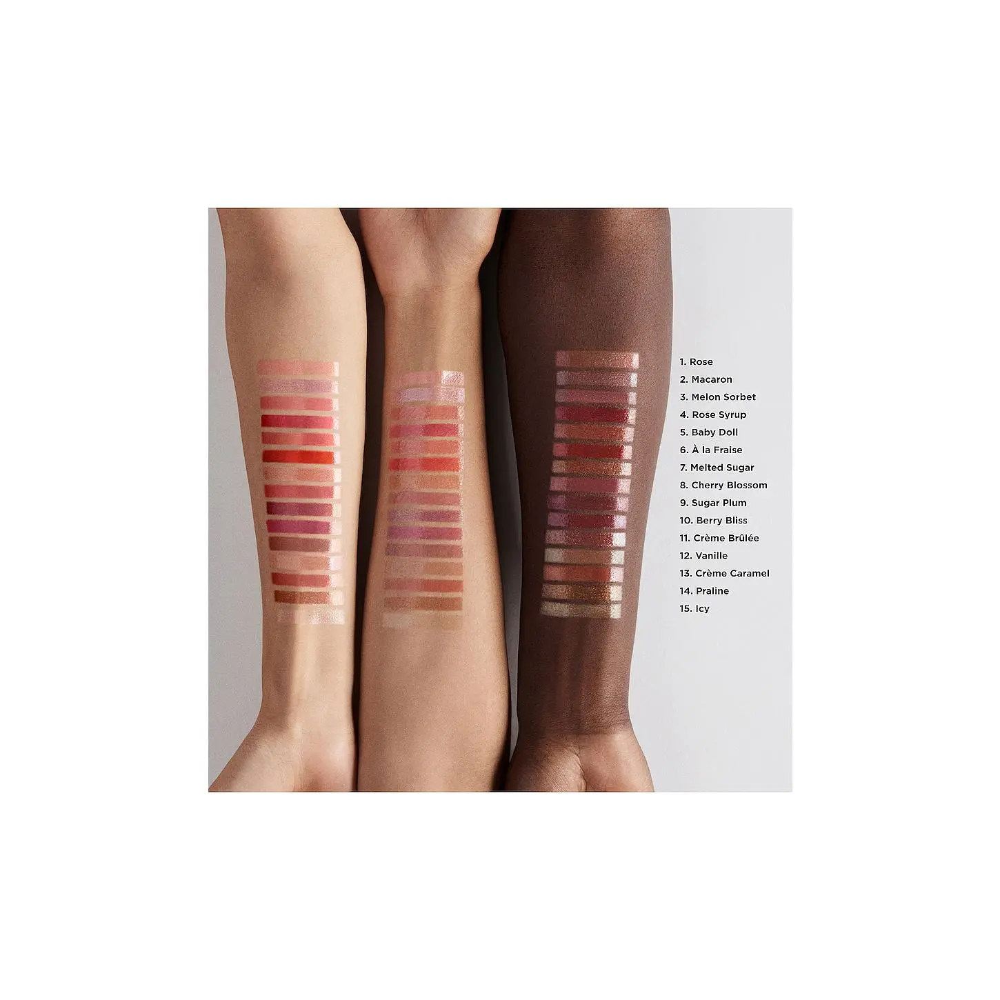 ·ingredients: Hydrogenated Polyisobutene, Lanolin Oil (Lanolin), Phytosteryl/Octyldodecyl Lauroyl Glutamate, Polyethylene, Tocopherol, Ricinus Communis (Castor) Seed Oil, Hydrogenated Castor Oil, Flavor (Aroma), Simmondsia Chinensis (Jojoba) Seed Oil, Oenothera Biennis (Evening Primrose) Oil, Vitis Vinifera (Grape) Seed Oil, Rosa Damascena Flower Oil, Rosa Gallica Flower Extract, Butyrospermum Parkii (Shea) Butter, Tocopheryl Acetate, Alumina, Disteardimonium Hectorite, Propylene Carbonate, Boron Nitride, Aqua/Water/Eau, Glycerin, Calcium Aluminum Borosilicate, Silica, Tin Oxide, Calcium Sodium Borosilicate, Synthetic Fluorphlogopite, Potassium Sorbate, Sorbic Acid. May Contain/Peut Contenir/(+/-): Blue 1 Lake (Ci 42090), Iron Oxides (Ci 77491, Ci 77492, Ci 77499), Mica, Red 28 Lake (Ci 45410), Red 6 (Ci 15850), Red 7 Lake (Ci 15850), Titanium Dioxide (Ci 77891), Yellow 5 Lake (Ci 19140), Yellow 6 Lake (Ci 15985). *Disclaimer: Ingredients are subject to change at the manufacturer's discretion. For the most complete and up-to-date list of ingredients, refer to the product packaging.