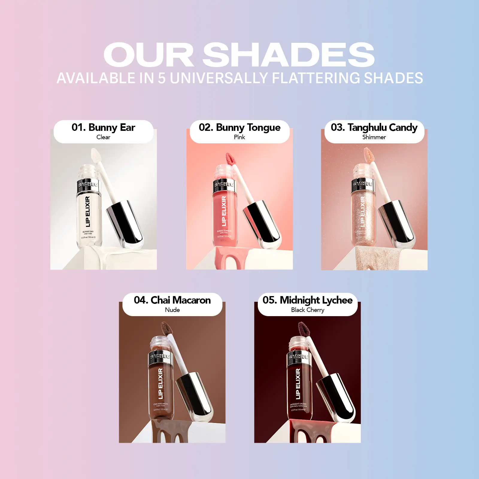 ·Step 4 - REAPPLY: Reapply the Lip Elixir as needed throughout the day for continuous hydration and shine. The non-sticky formula ensures your lips remain comfortable and hydrated.