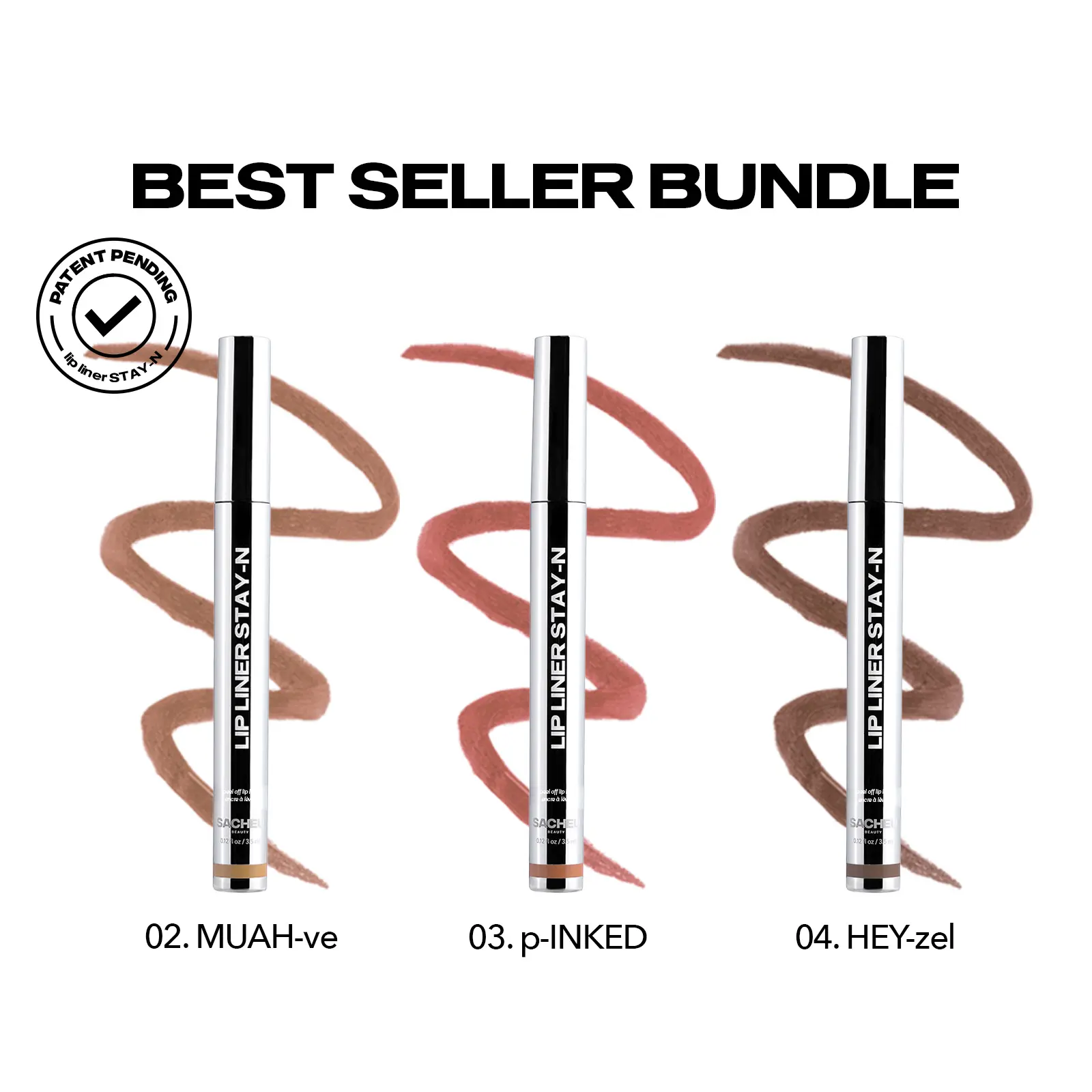 Get the ultimate lip look with our Lip Icons Seller Bundle, featuring the top shades of Lip Liner STAY-N: nOOHde, p-INKED, MUAH-ve, and HEY-zel.Ā Ā