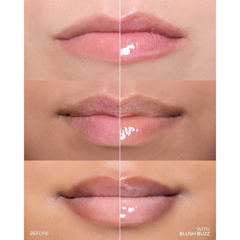 Blush Buzz: Polybutene, Caprylic/Capric Triglyceride, Octyldodecanol, Silica Dimethyl Silylate, Cetearyl Ethylhexanoate, Aroma (Flavor), Acmella Oleracea Extract, Calcium Sodium Borosilicate, Mica, Sorbitan Isostearate, Tocopheryl Acetate, Passiflora Edulis Seed Oil, Ethylhexyl Palmitate, Helianthus Annuus Seed Oil (Helianthus Annuus (Sunflower) Seed Oil), Portulaca Pilosa Extract, Sucrose Cocoate, Mangifera Indica Fruit Extract (Mangifera Indica (Mango) Fruit Extract), Tin Oxide, Palmitoyl Tripeptide-38, Trihydroxystearin, Sodium Hyaluronate, Tocopherol+/- (May Contain): CI 77891 (Titanium Dioxide), CI 77491 (Iron Oxides), CI 15850 (Red 6 Lake), CI 77492 (Iron Oxides), CI 15850 (Red 7 Lake), CI 42090 (Blue 1 Lake)
