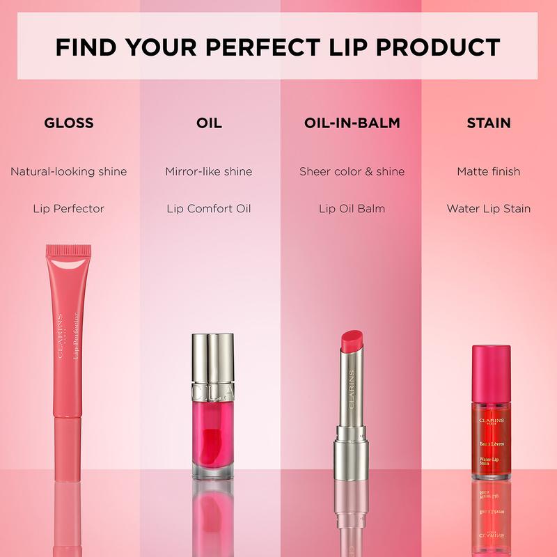 The dual-action, tinted, oil-in-stick texture, delivers an instant hint of color and nourishment, plus luminous shine. The lightweight and creamy formula takes lips from dry and fragile to smooth and supple with 24H¹ hydration and 12H² comfort. A powerful trio of responsibly harvested, essential oils- Organic Sweetbriar Rose,* Hazelnut, and Organic Jojoba*- plus a hyaluronic acid powered plumping + hydrating peptide, provide comfort and care - delivering a +20% fuller pout immediately³ and bare lips that look +30% smoother⁴.