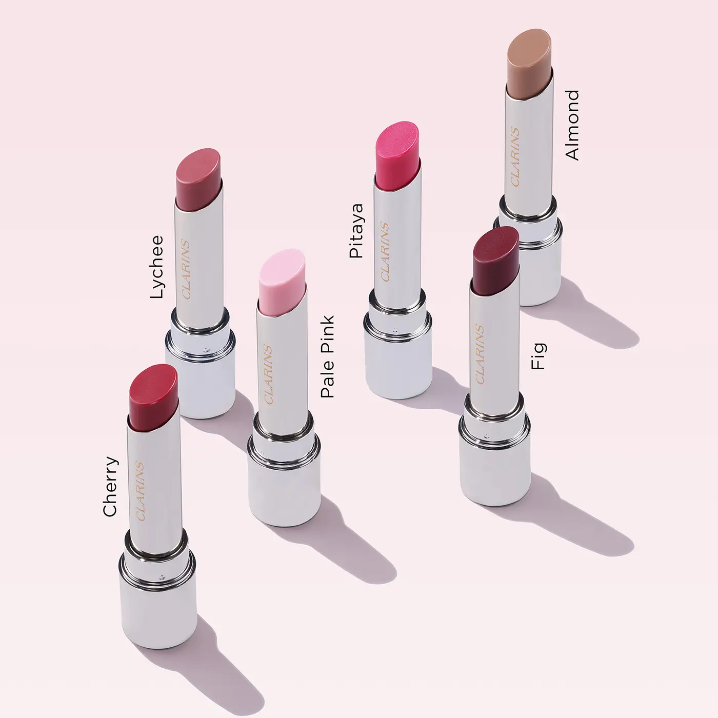 Available in 6 sheer, shades — 01 Pale Pink, 02 Pitaya, 03 Lychee, 04 Almond, 05 Cherry, and 06 Fig—each infused with a delightfully addictive, Black Currant and Vanilla scent.