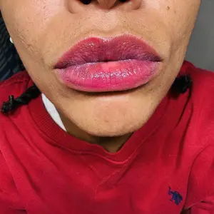Love the new lip oil by boss up cosmetics. Nourishing and healing. I love that it's cruelty free, vegan and handmade with love. Great that it's black and Latina owned and women owned!. I like the coverage and that it gives my lips a little bit of more of a pink tint.