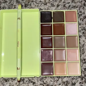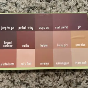 I used this pallet so that’s why the case is dirty this pallet did not disappoint so beautiful & you can create so many lip combos and the product actually stays on for a while unlike most lip products it feels light I also used let me cook as a pot concealer for my acne spots it’s my perfect shade