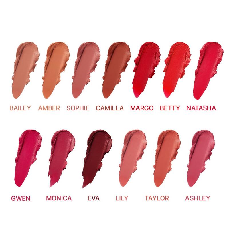 I got the tinted in Olivia and matte in Sophie and love them both. I have to say I like the matte Sophie more its absolutely stunning and long lasting. Feels nice on lips and it smells nice as well.