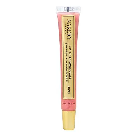 Nakery Beauty Rosey Lip-Plumping Shimmer Gloss What It Is The ultimate gotta-have-it lip illuminizing gloss with explosive shimmer and shine that feels as good as it looks. Give your lips a multi-dimensional juicy color with a reflective glaze that will give your look the perfect finish.  What You Get .5 fl. oz. Lip-Plumping Shimmer Gloss - Rosey (dusty rose pink with gold shimmer) What It Does With a unique plumping technology from peptides, lips appear temporarily fuller-looking and temporarily plumper-looking to enhance the look of lips With the most intense pigments for a temporarily plumping, high-shine reflection, while infused with optical diffusers that help blur the appearance of imperfections, fine lines and wrinkles on the lips Provides hydration, leaving lips looking temporarily plumped,  temporarily fuller-looking, softer and smoother Instantly brightens the look of dull lips after application  Formulated with a combination of SEPILIFT DPHP (dipalmitoyl hydroxyproline), dermaxylan ogliopeptide and ceramide blend (C12-15 alkyl benzoate, tribehenin, Ceramide NG, PEG-10 phytosterol and palmitoyl hexapeptide-12), niacinamide, sodium hyaluronate, ceramides, Vitamin E, lactic acid and pearlescent and iridescent pigments (mica and titanium dioxide)