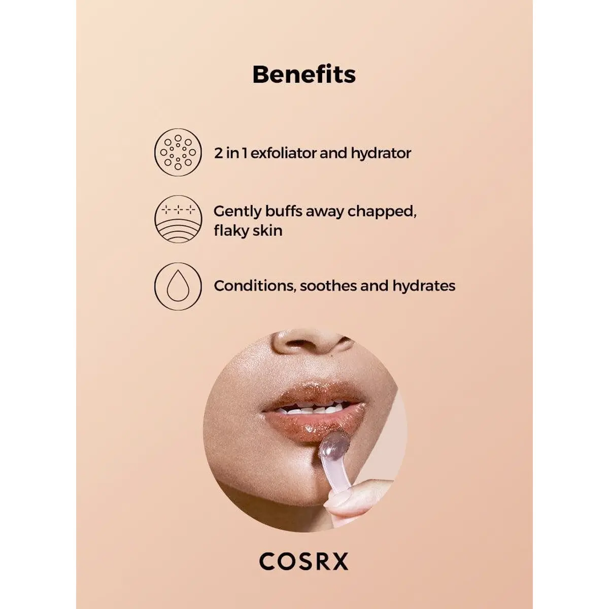 A lip scrub that gently buffs away dead flakes with sugar crystals and keeps lips hydrated with honey extract.