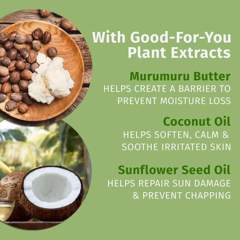 | Ingredients | Bis-Diglyceryl Polyacyladipate-2, Cocos Nucifera (Coconut) Oil, Butyrospermum Parkii (Shea) Butter, Helianthus Annuus (Sunflower) Seed Oil, Cocoglycerides, Hydrogenated Polyisobutene, Synthetic Wax, Cetearyl Alcohol, Ethylhexyl Palmitate, Trihydroxystearin, Caprylic/Capric Triglyceride, Cannabis Sativa Seed Oil, Flavor (Aroma), Astrocaryum Murumuru Seed Butter, Simmondsia Chinensis (Jojoba) Seed Oil, Aloe Barbadensis Leaf Extract, Ananas Sativus (Pineapple) Fruit Extract, Cucumis Melo (Melon) Fruit Extract, Persea Gratissima (Avocado) Oil, Vitis Vinifera (Grape) Seed Oil, Eclipta Prostrata Extract, Melia Azadirachta Leaf Extract, Moringa Oleifera Seed Oil, Water/Aqua/Eau, Caprylyl Glycol, Polyurethane-79, Stevioside, Tocopheryl Acetate, Limonene, Benzyl Benzoate, Citric Acid, Panthenol, Tetrahexyldecyl Ascorbate, Tocopherol, Potassium Hydroxide, Annatto (CI 75120) |