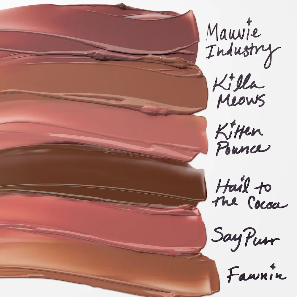 This checks all the boxes for me: moisture, color, and texture. It stays on for a long time and I'm obsessed with the fuzzy applicator. I kinda wish it didn't last as long so I could reapply more, ha. I got Say Purr as an everyday color and will be getting a few more darker colors for going out.