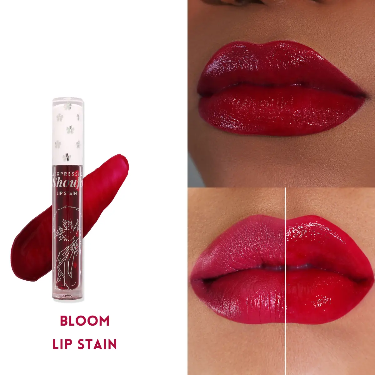 Wow! THIS IS IT! So I love Sushy Glows bloody stains but was searching for a red stain with a blue/scarlett/dragon fruit hue. I purchased April & Bloom and they're both exactly what I wanted for my collection! Pictured is Bloom dried down with City Lips Clear plumping gloss = PERFECT!