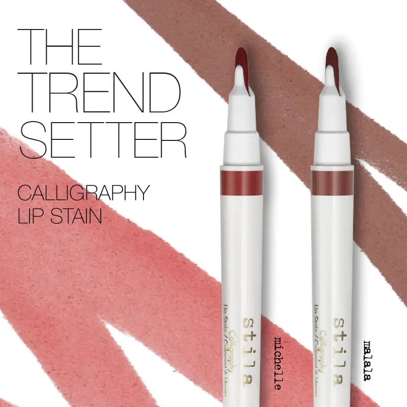 Stila's Calligraphy Lip Stain is a revolutionary, double-duty lip stain that lines lips with precision while providing a full sweep of soft buildable color.