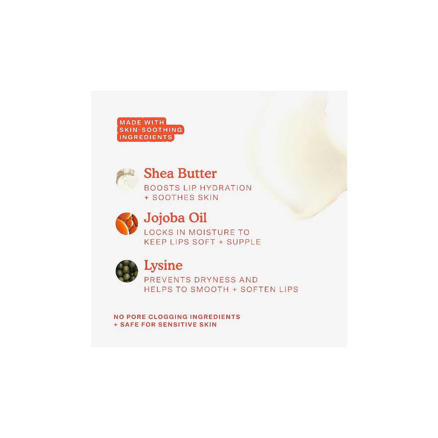·Designed for sensitive, irritated lips, this cushiony treatment delivers instant comfort + long-lasting hydration for smooth, softie lips
