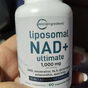 ·Micro Ingredients offers a 10-in-1 liposomal NAD+ ultimate formula in vegetarian capsules, combining NAD+ with coenzymes, plant-based extracts such as grape seed, and carotenoids like astaxanthin in one 1,000mg combined serving per day.