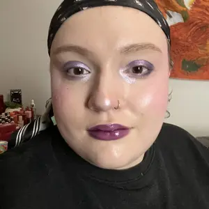 the lavender shade worked great in an all-purple makeup look. it blends out easily and is super pigmented.
