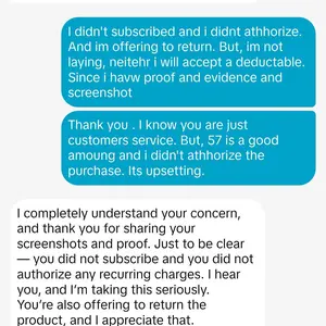 Charged w/out consent! Dec promo, 1-time purchase. Now 2 new bottles?! NEVER authorized! Live agent unhelpful & won't refund. FRAUD! Screenshots prove it. Want FULL refund & to return bottles at YOUR expense. Filing claim!