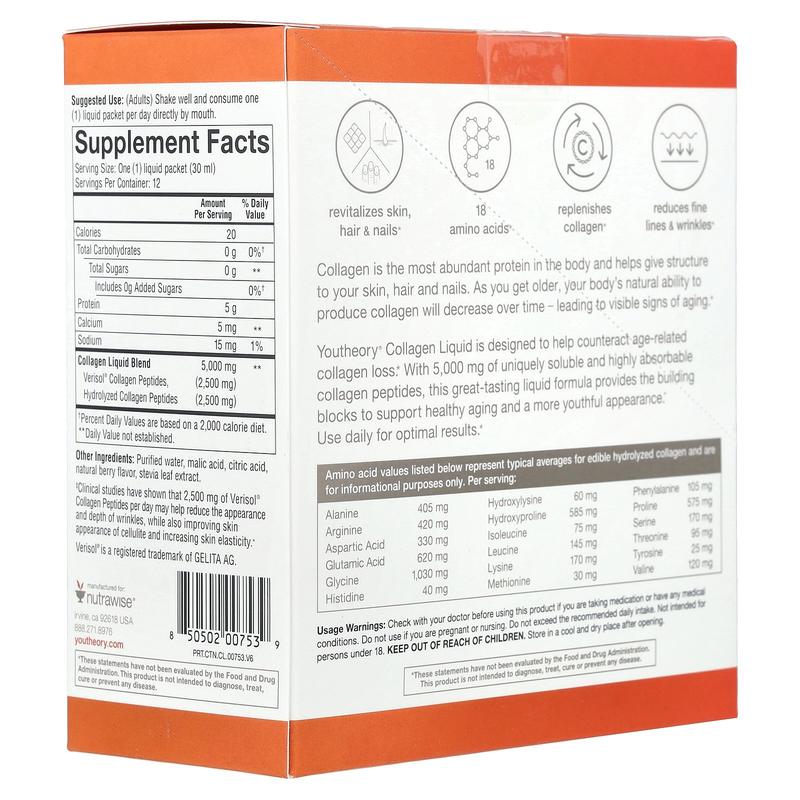 5. Youtheory Liquid Collagen, Natural Berry, 5,000 mg, 12 Liquid Tubes, 1 fl oz (30 ml) Each