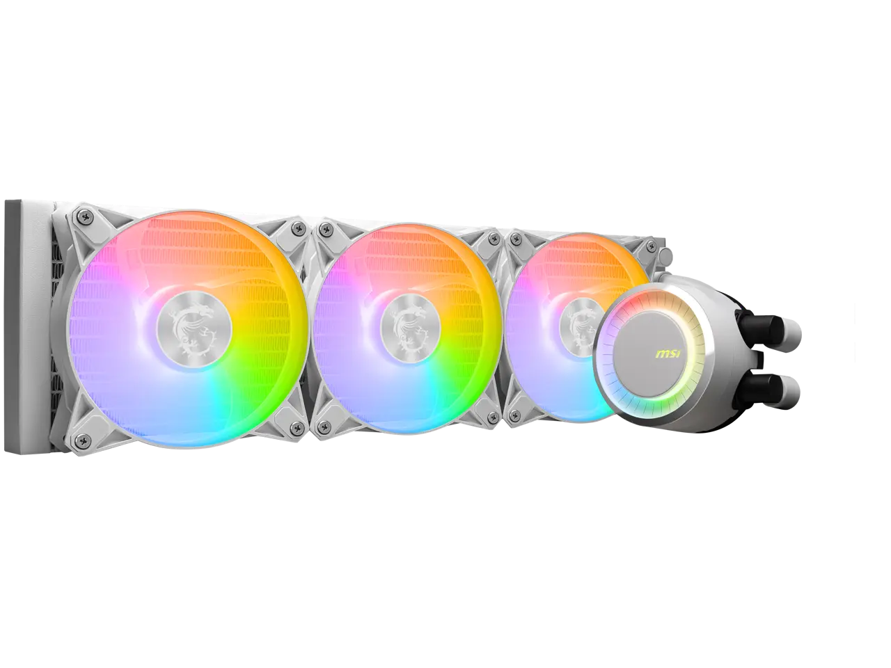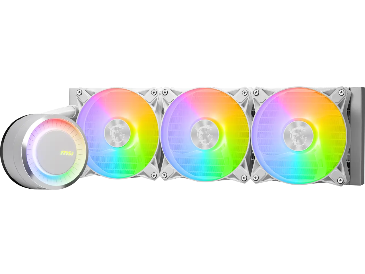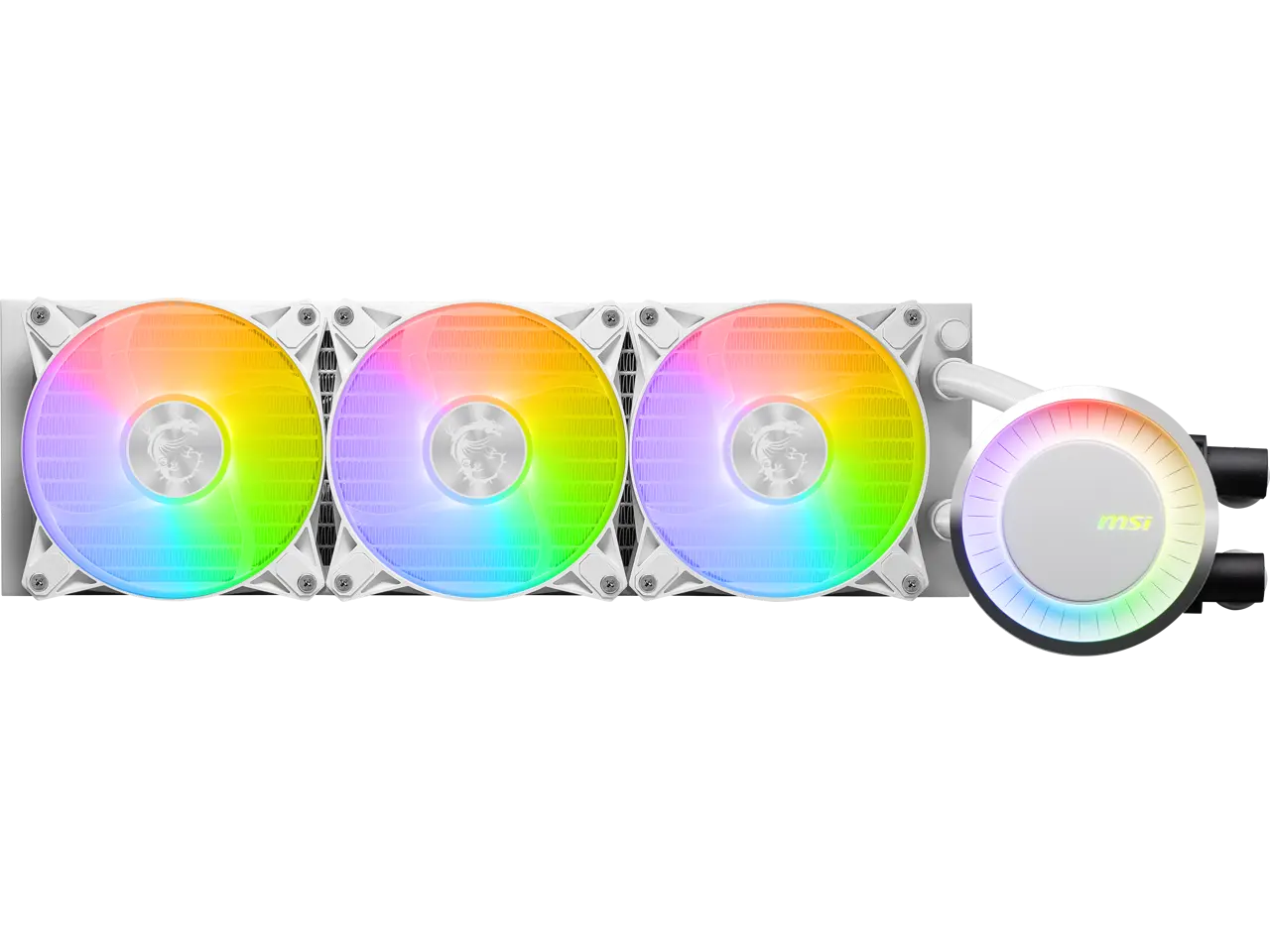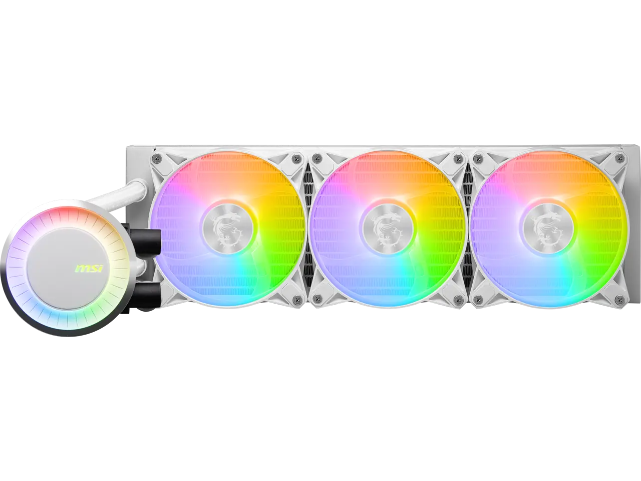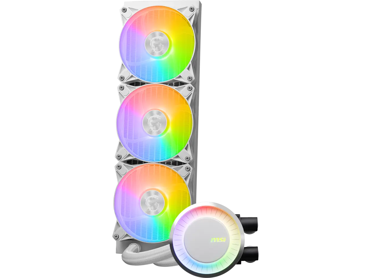MSI MAG CoreLiquid E360 White - AIO ARGB CPU Liquid Cooler - Rotating Cap Design - 360mm Radiator - Triple 120mm ARGB PWM Fans - LGA 1851,1700 Ready / AM5 Compatible