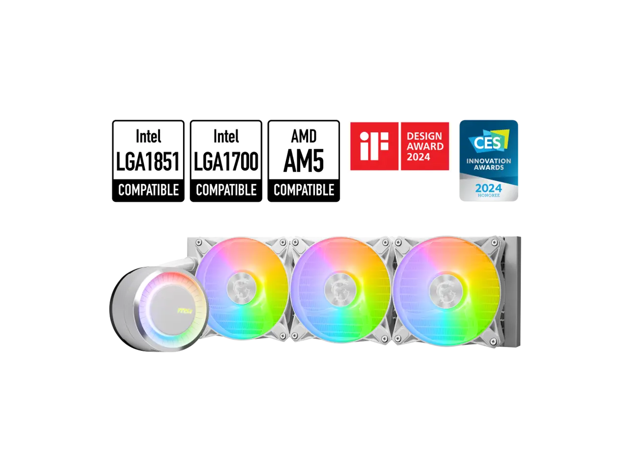 5. MSI MAG CoreLiquid E360 White - AIO ARGB CPU Liquid Cooler - Rotating Cap Design - 360mm Radiator - Triple 120mm ARGB PWM Fans - LGA 1851,1700 Ready / AM5 Compatible